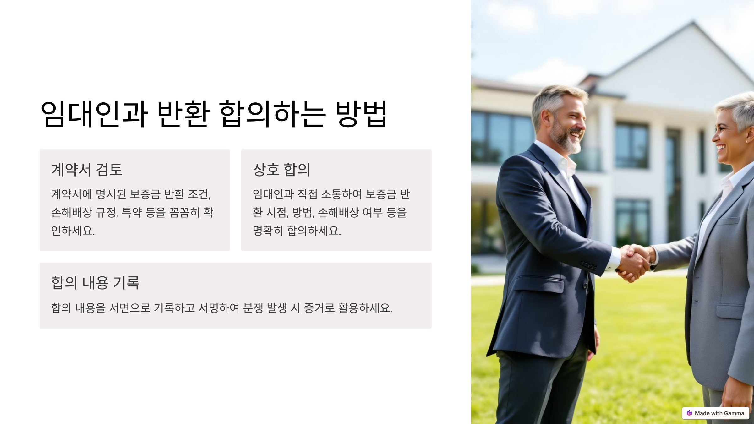 보증금 반환 문제를 임대인과 원만하게 해결하려면 사전에 합의를 잘하는 것이 중요해요. 반환 과정에서의 합의 팁을 정리해 봤어요.