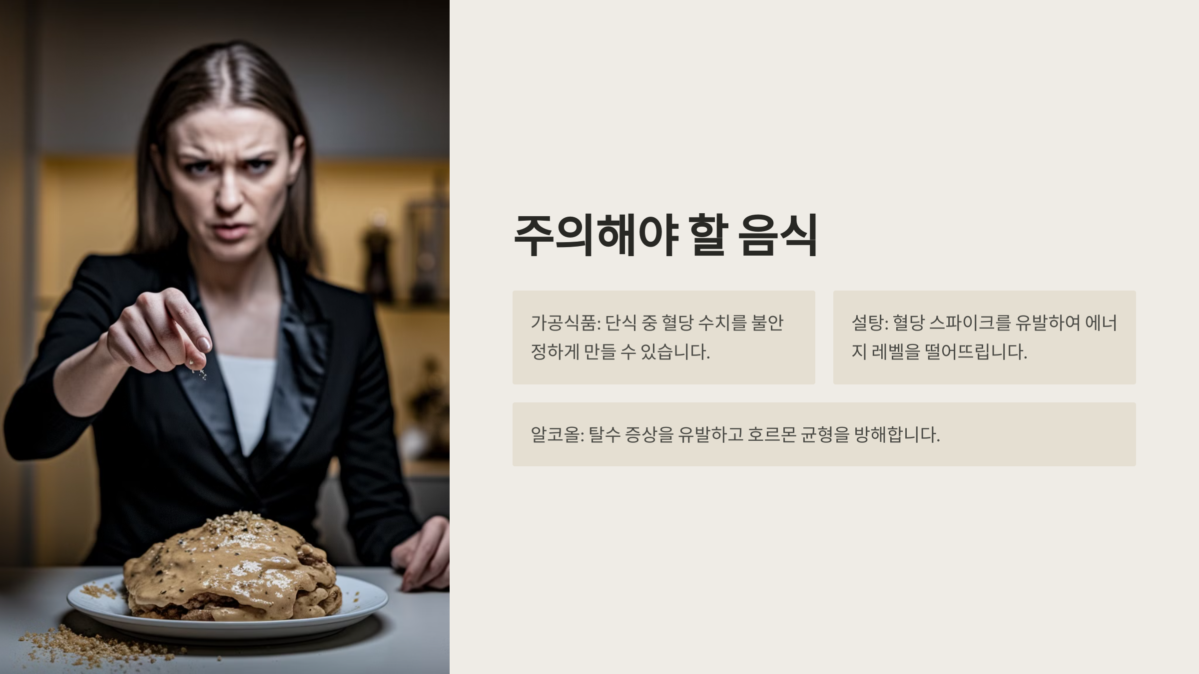 간헐적 단식을 할 때 특정 음식은 단식의 효과를 저해하거나 건강에 부담을 줄 수 있어요. 여성의 경우 특히 호르몬 균형을 유지하는 것이 중요하기 때문에 주의해야 할 음식들을 알아볼게요.