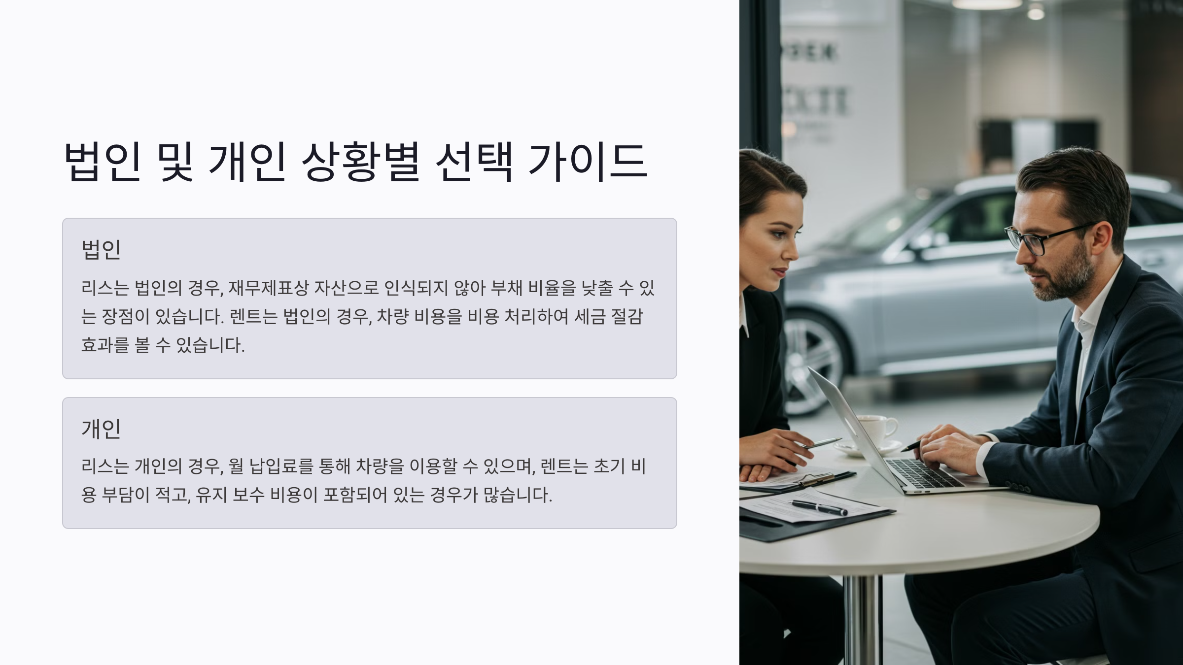 📊 법인 vs 개인, 리스·렌트 비교