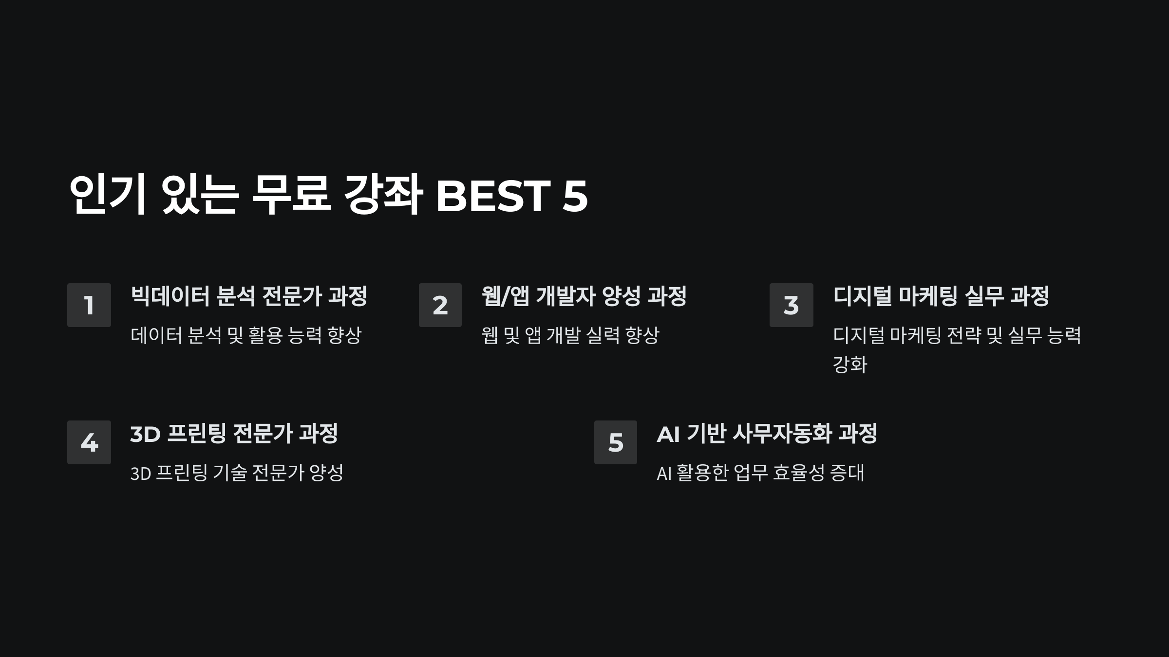 🎯 그렇다면, 가장 인기 있는 무료 강좌 BEST 5는 무엇일까요?