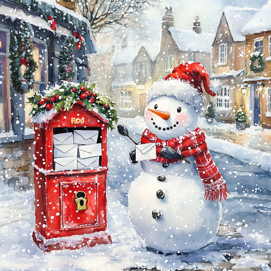 눈송이, 크리스마스 트리, 산타클로스 등 겨울 분위기를 담은 그림을 추가하세요.