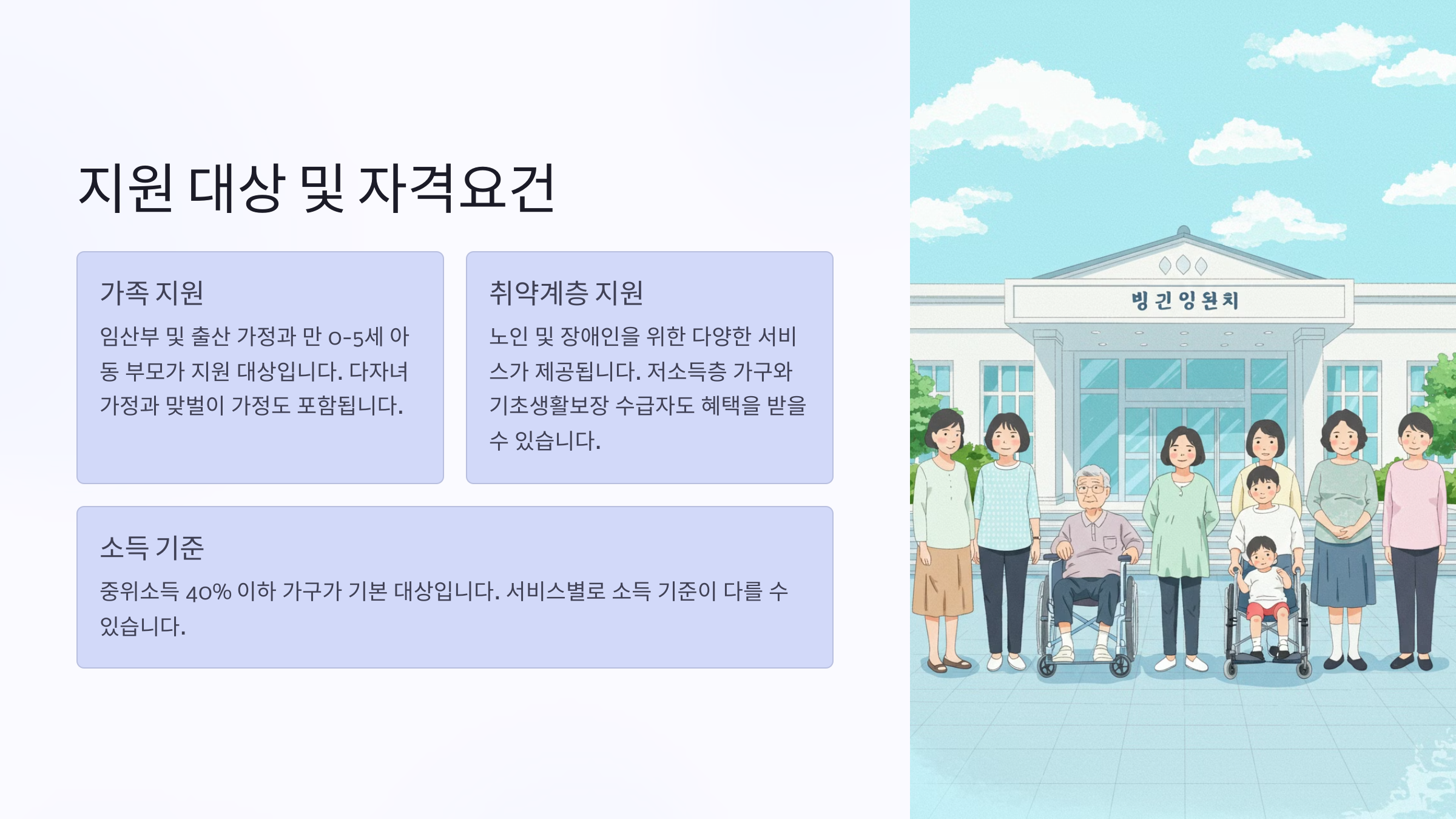특히 다자녀 가정, 저소득층, 장애인 가정, 한부모 가정은 우대 지원까지 받을 수 있어요. 놓치면 아까운 혜택들이에요!