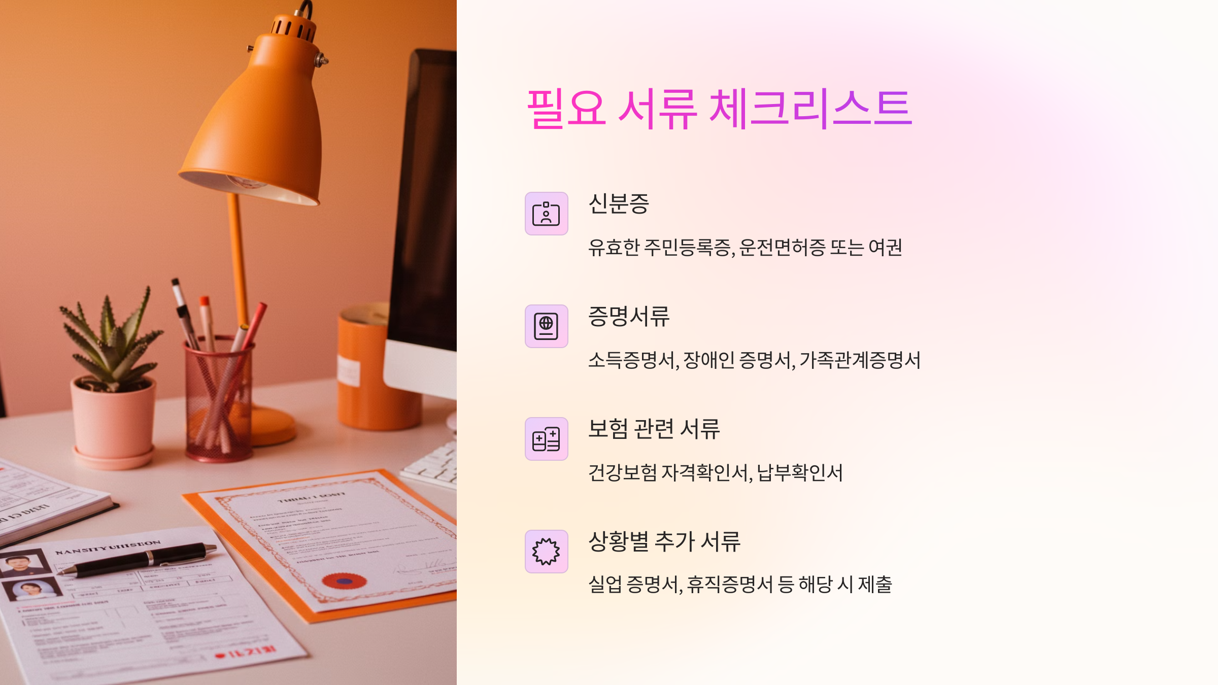 기본적으로 신청인 신분증과 통장 사본도 함께 준비해두면 좋아요. 🪪💳