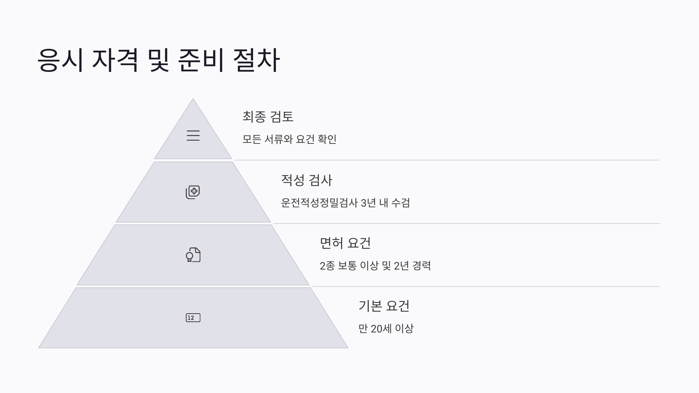 | 응시 대상 | 만 19세 이상, 1종 보통 이상 면허 소지자 |