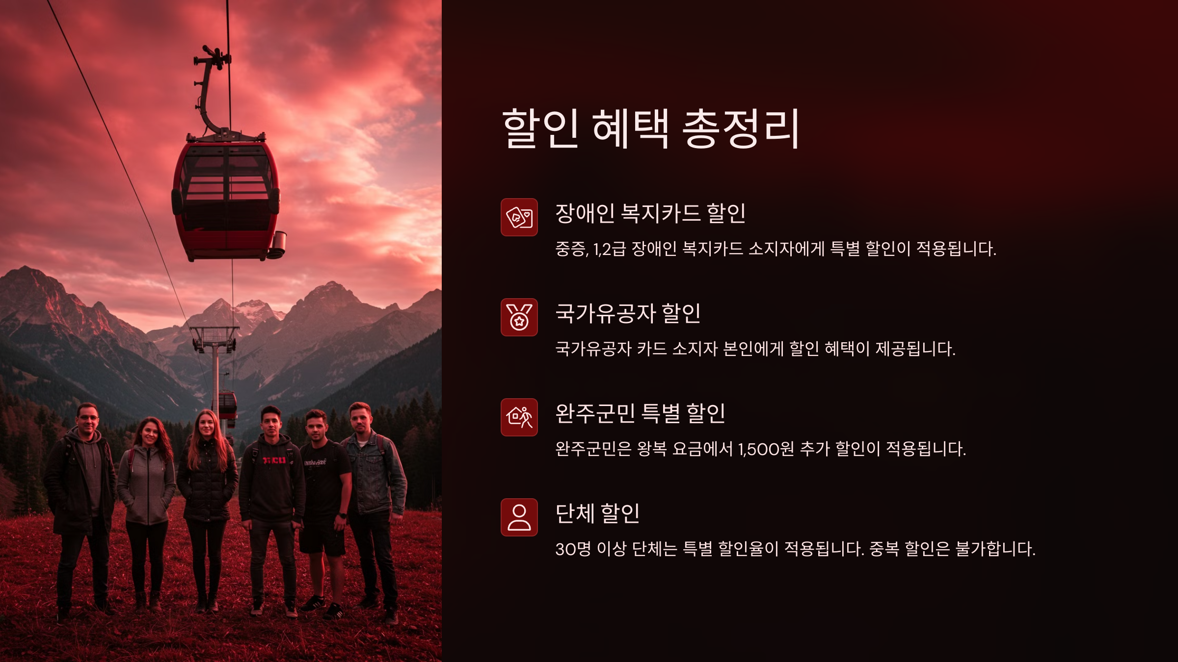 📌 대둔산 케이블카 할인 대상 및 내용