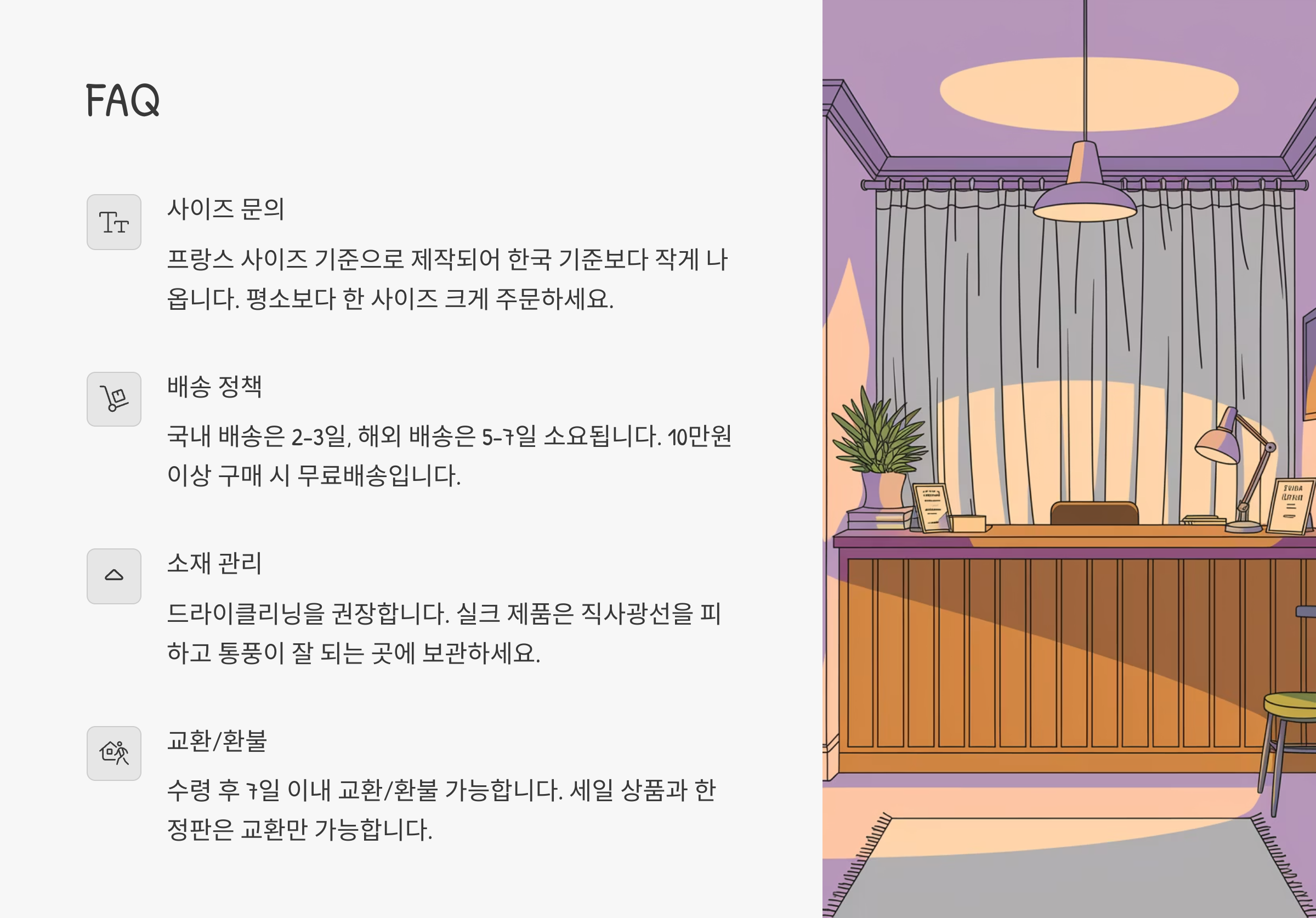 A4. 수령일 기준 7일 이내 가능해요. 단, 세일 상품이나 사전 예약 상품은 예외예요.