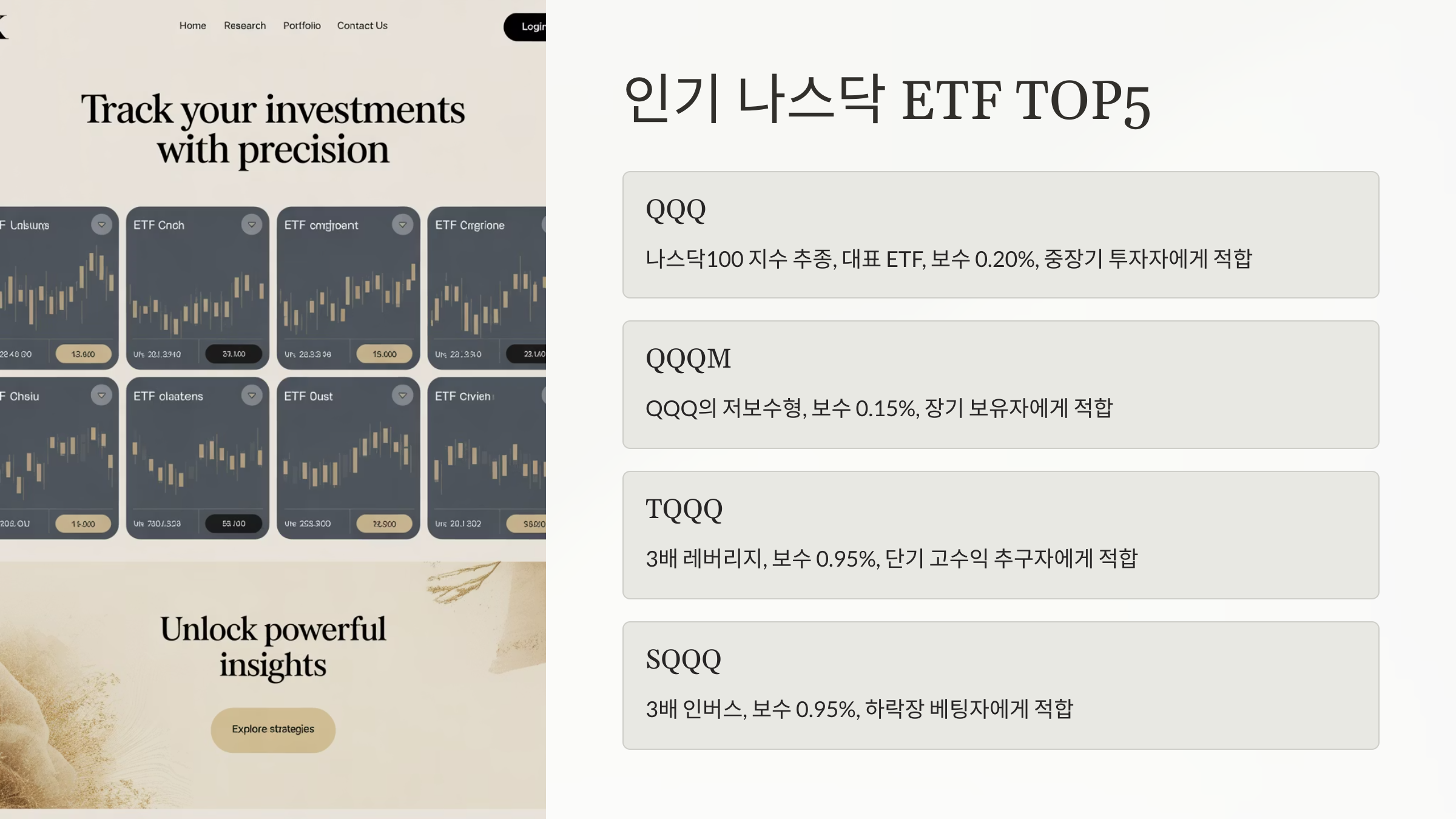🔎 QQQ, QQQM, TQQQ… 정확히 뭐가 다를까? 국내 분석 기반으로 깔끔하게 정리된 사이트!
