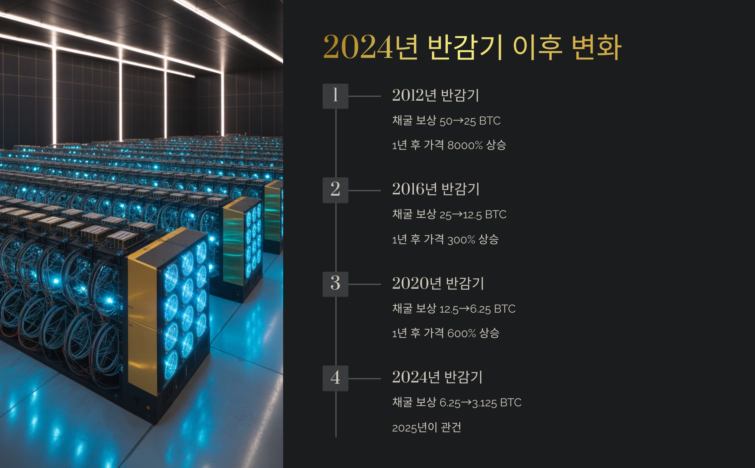 | 2024년 | 6.25 → 3.125 BTC | 진행 중 (2025 관건) |