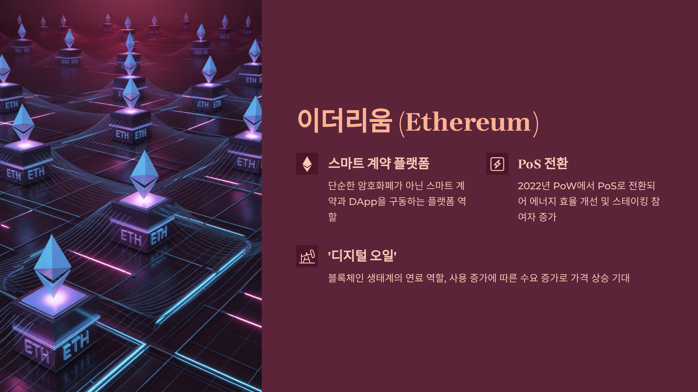 ETH는 ‘디지털 오일’이라는 별명처럼, 블록체인 생태계의 연료 역할을 해요. 이 말은 곧, 쓰임이 많다는 뜻이고, 사용이 늘수록 수요가 증가하니 장기적으로 가격에도 긍정적인 영향을 줄 수 있어요.