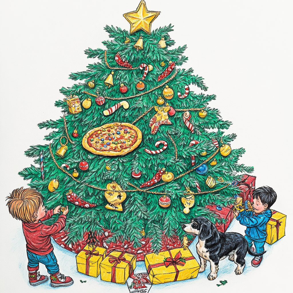 크리스마스 트리와 선물을 주요 디자인 요소로 활용합니다.