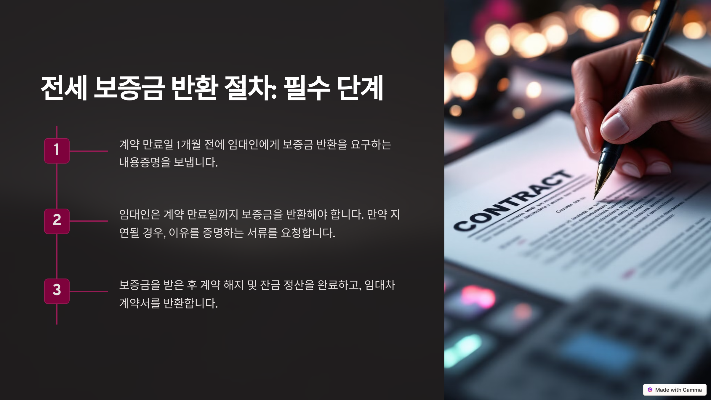 전세 보증금 반환을 받으려면 기본적으로 몇 가지 절차를 따라야 해요. 계약서에 명시된 내용을 다시 한 번 검토하고 집 상태를 점검하는 것이 첫 번째 단계예요.