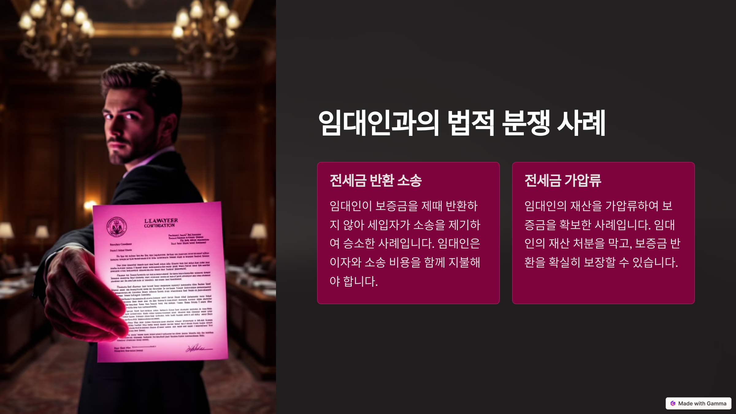 또 다른 사례로는 임대인의 재정 상황 악화로 인해 보증금 반환이 어려운 경우가 있는데, 이런 경우에는 보증보험에 가입했는지 확인하는 것이 도움이 돼요.