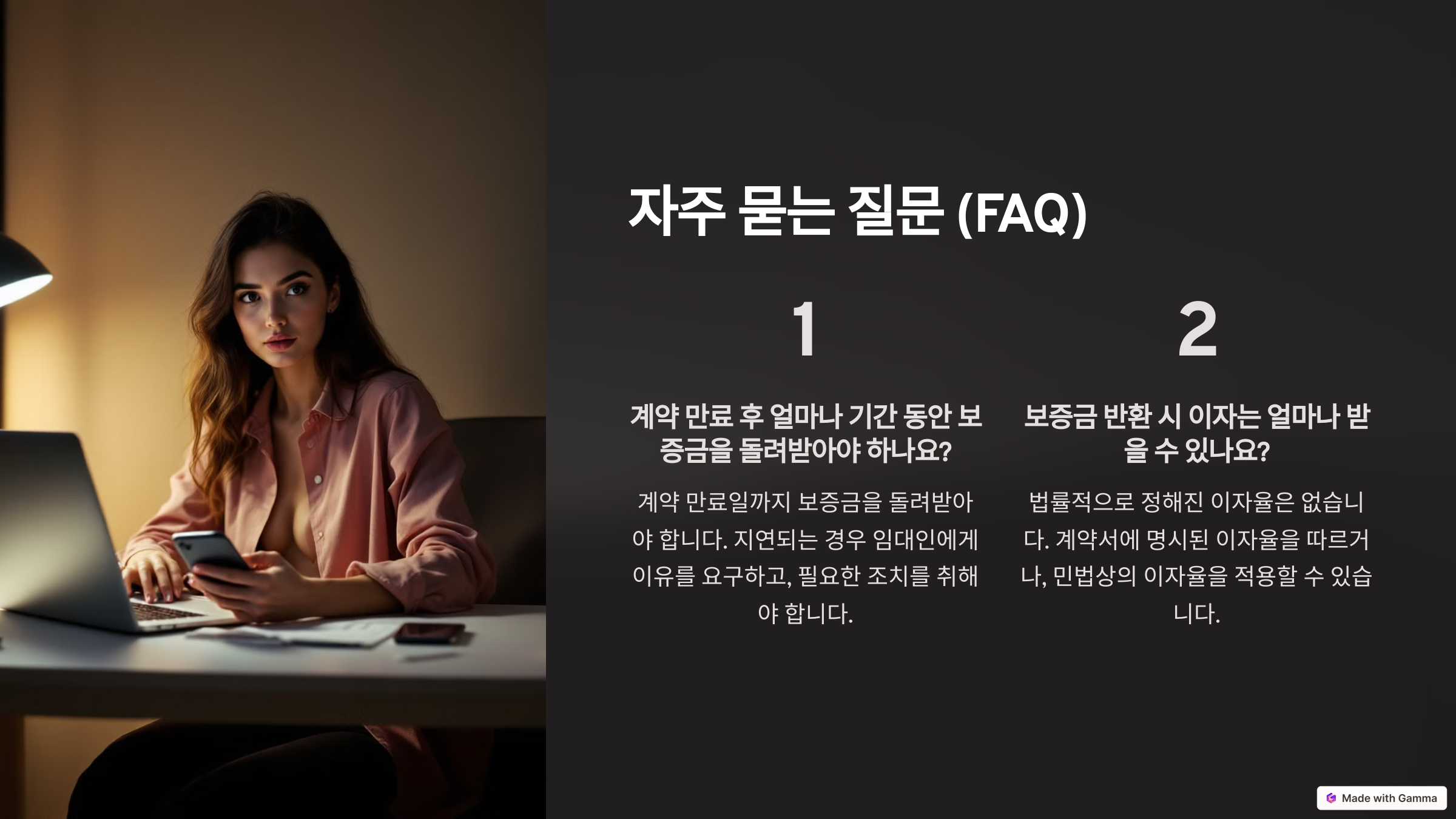 1. 집 상태 문제로 반환이 지연될 위험: 임대인이 세입자가 사용한 집 상태를 이유로 보증금 일부를 공제하려 할 수 있어요. 이럴 때는 계약서에 명시된 조건을 다시 확인해야 해요.