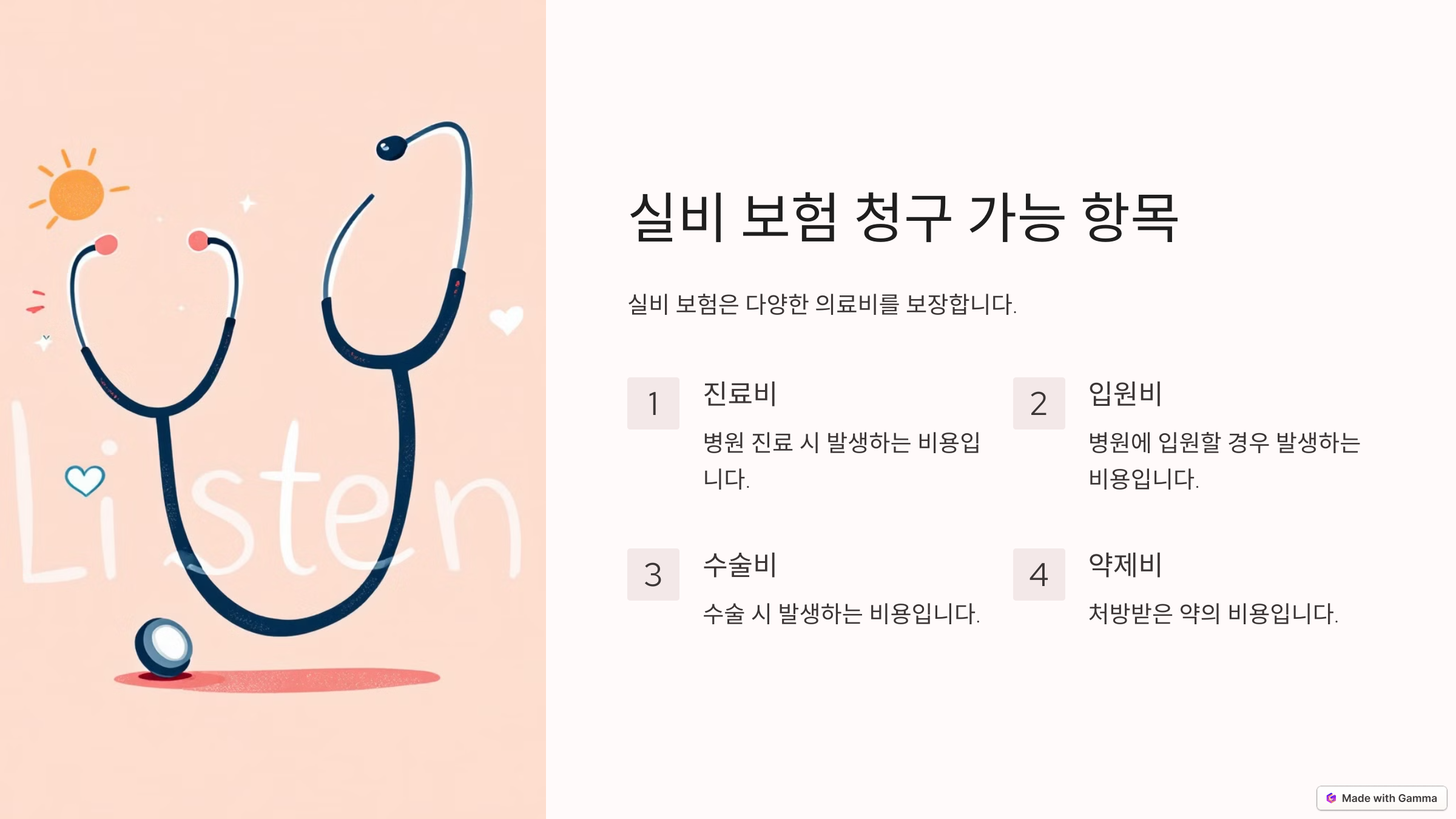 - 💳 보험금 청구서: 각 보험사에서 제공하는 양식을 작성해 제출해야 해요.