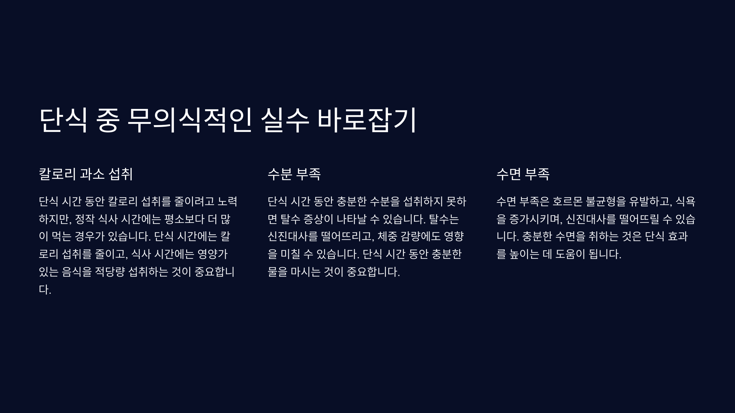 - 1. 유연한 접근: 때때로 단식 시간을 조정하거나 유동적으로 패턴을 바꿀 수 있어야 해요.