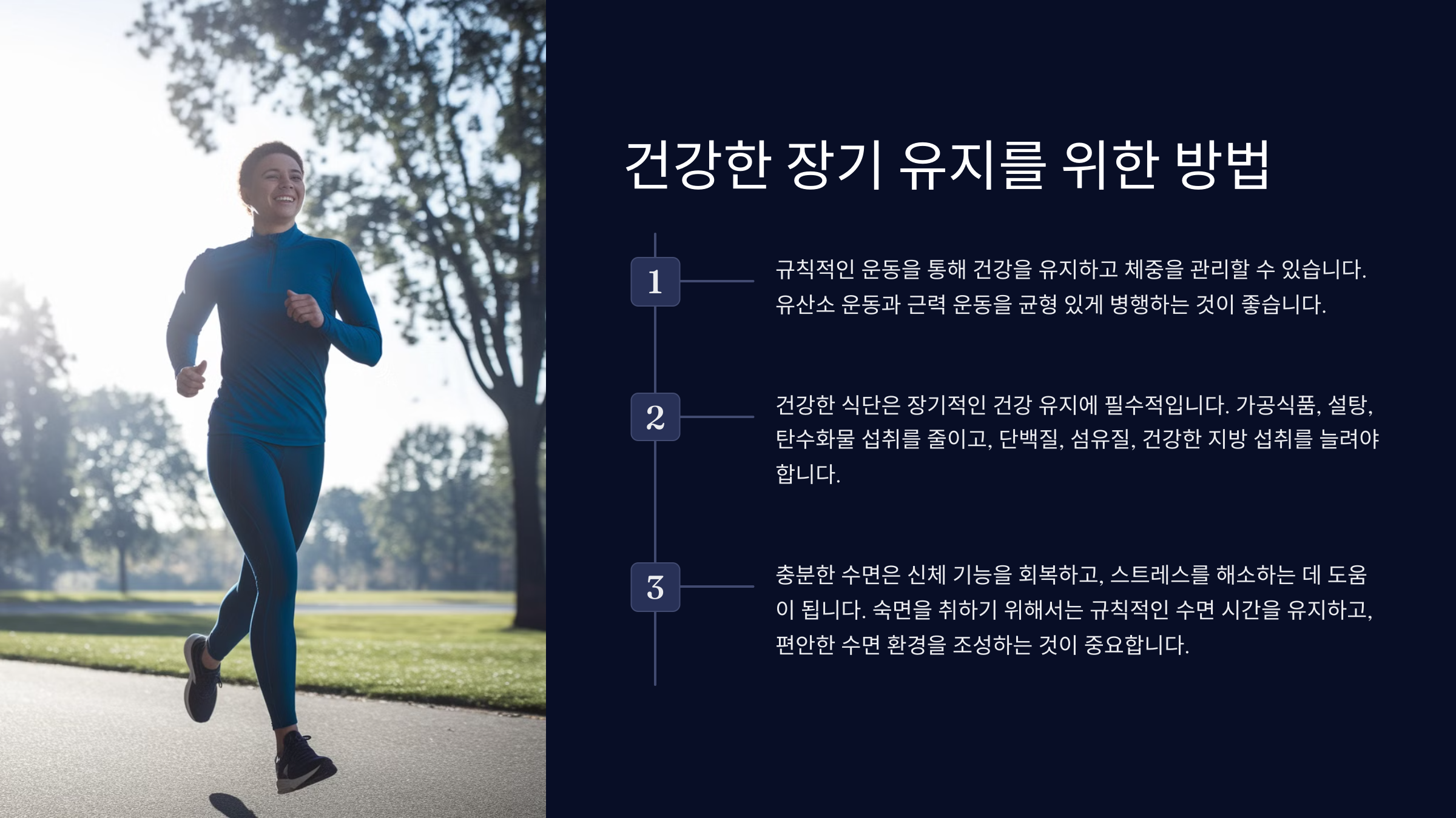 - 3. 정기적인 운동: 유산소 운동과 근력 운동을 병행해 기초대사량을 유지하세요.