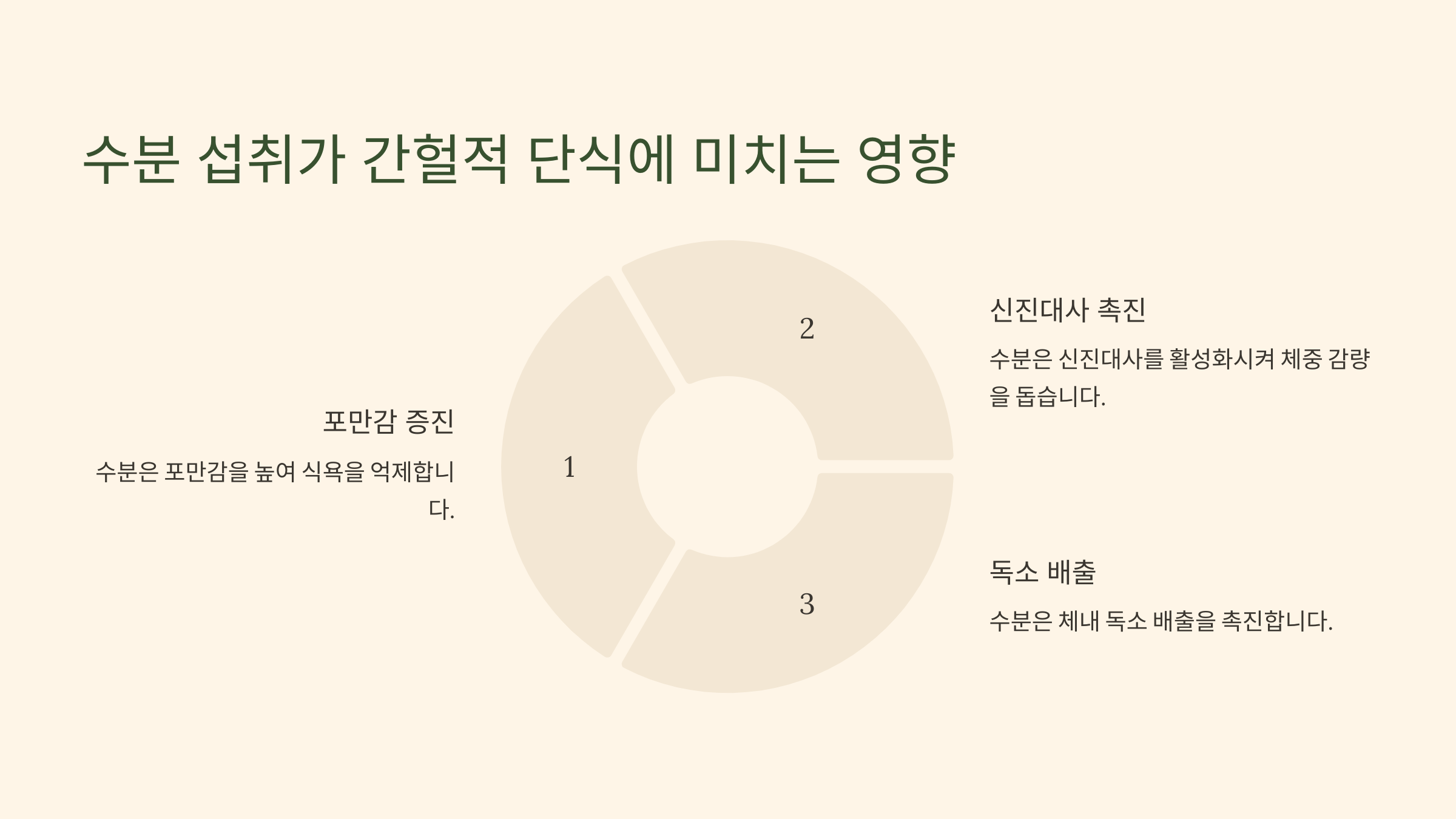 간헐적 단식 중 수분 섭취는 단순히 갈증 해소뿐만 아니라 지방 연소와 대사 작용에도 중요한 역할을 해요. 단식 기간 동안 몸이 지방을 에너지로 변환할 때 수분이 부족하면 대사 속도가 느려질 수 있어요. 따라서 충분한 수분 섭취는 간헐적 단식의 효과를 극대화하는 핵심 요소랍니다.