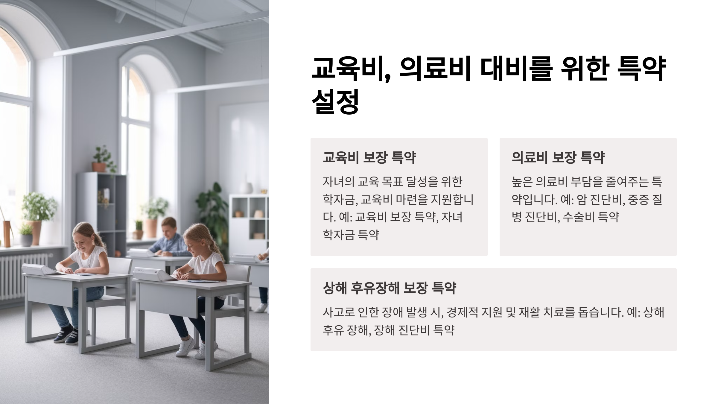교육비, 의료비 대비를 위한 특약 설정