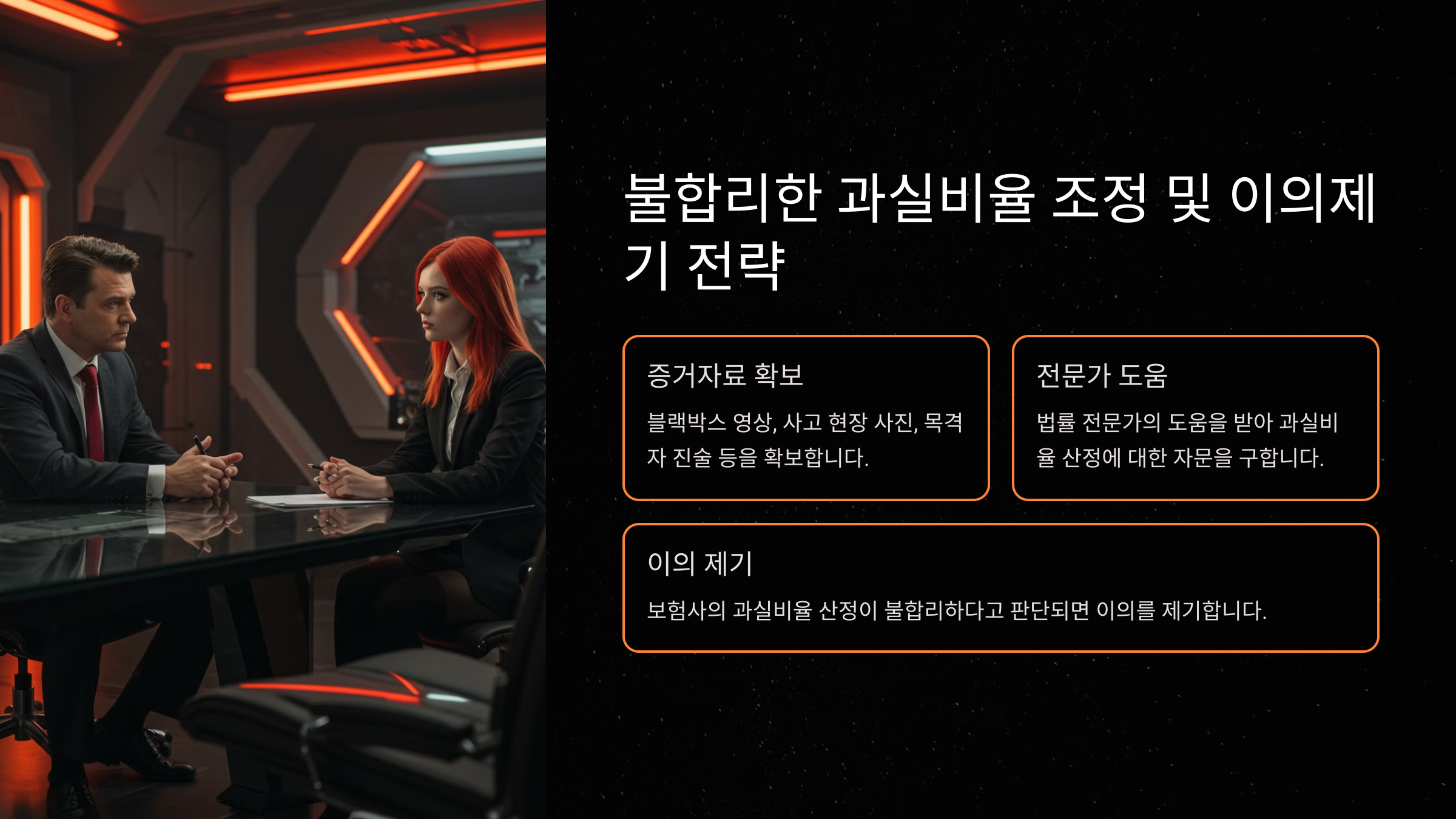 또한, 금융감독원에 조정을 요청하면 객관적인 입장에서 판단해 주기 때문에, 보험사 협의가 어려울 때 적극적으로 활용하는 것이 좋아요. 다음 섹션에서는 억울한 과실비율을 피하는 실전 대처법을 살펴볼게요. 🚘