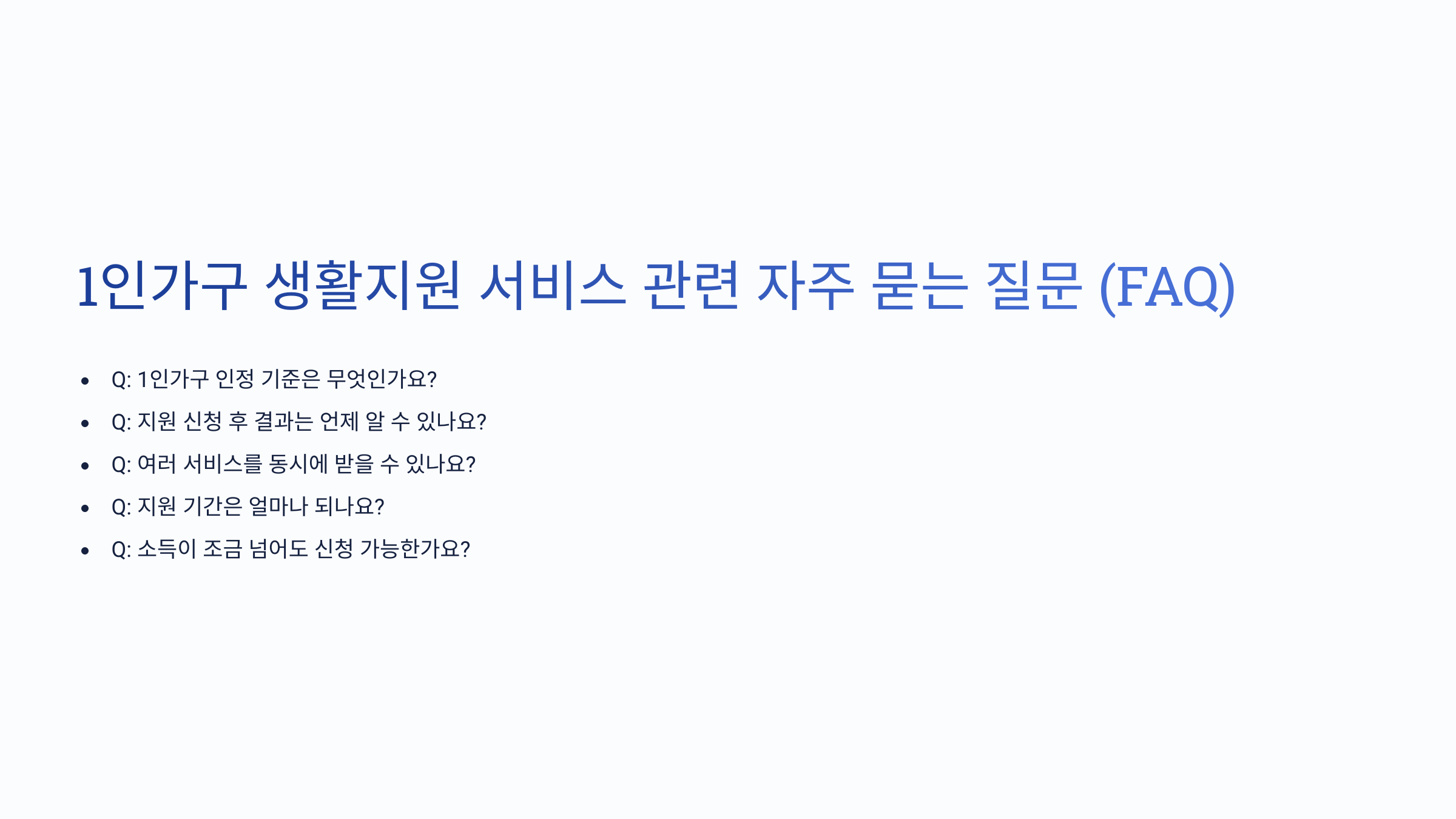 ❓ 1인가구 생활지원 서비스 관련 자주 묻는 질문 (FAQ)
