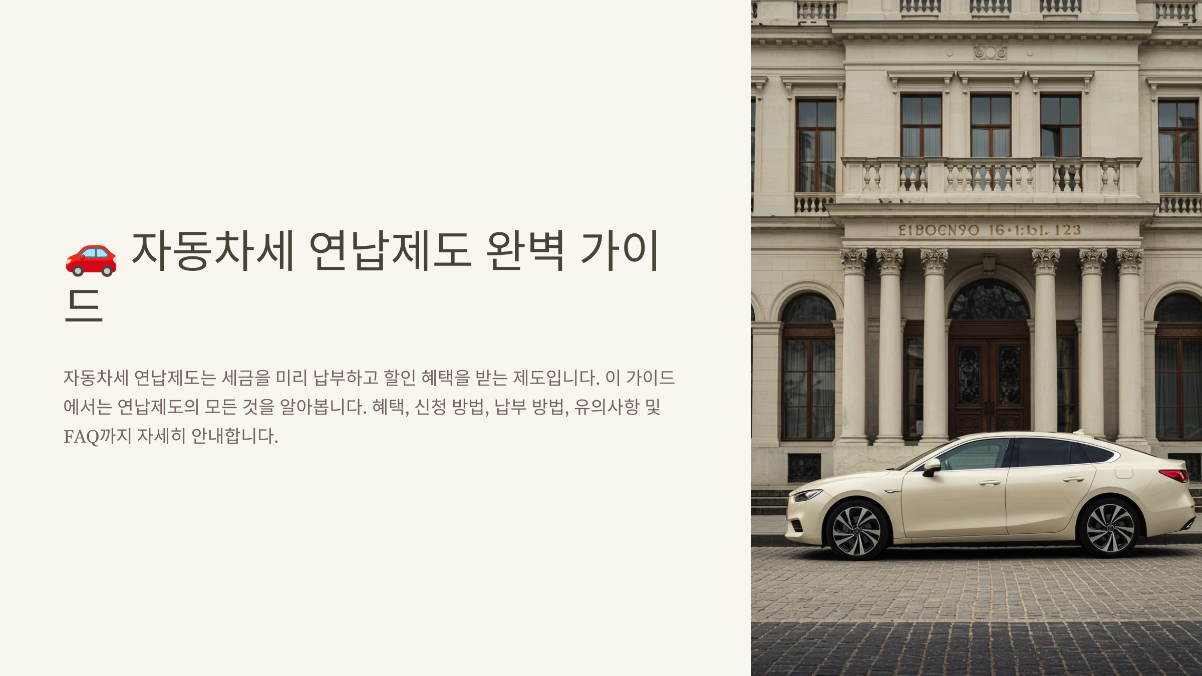 📢 "🚗 자동차세? 그냥 내면 손해! 💰 연납하면 최대 7.5% 할인받고 절약하세요!"