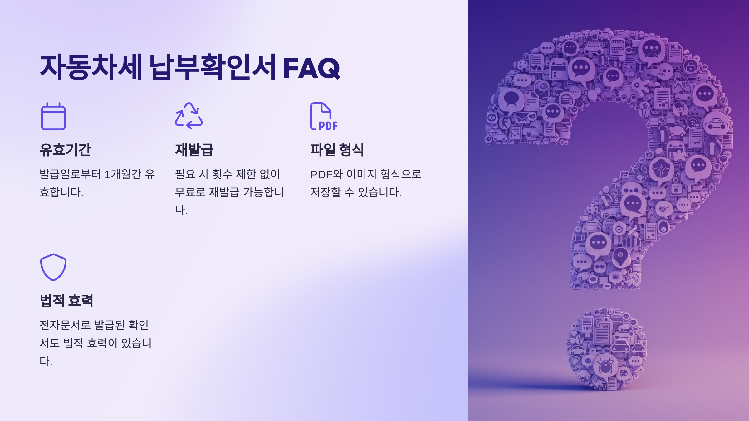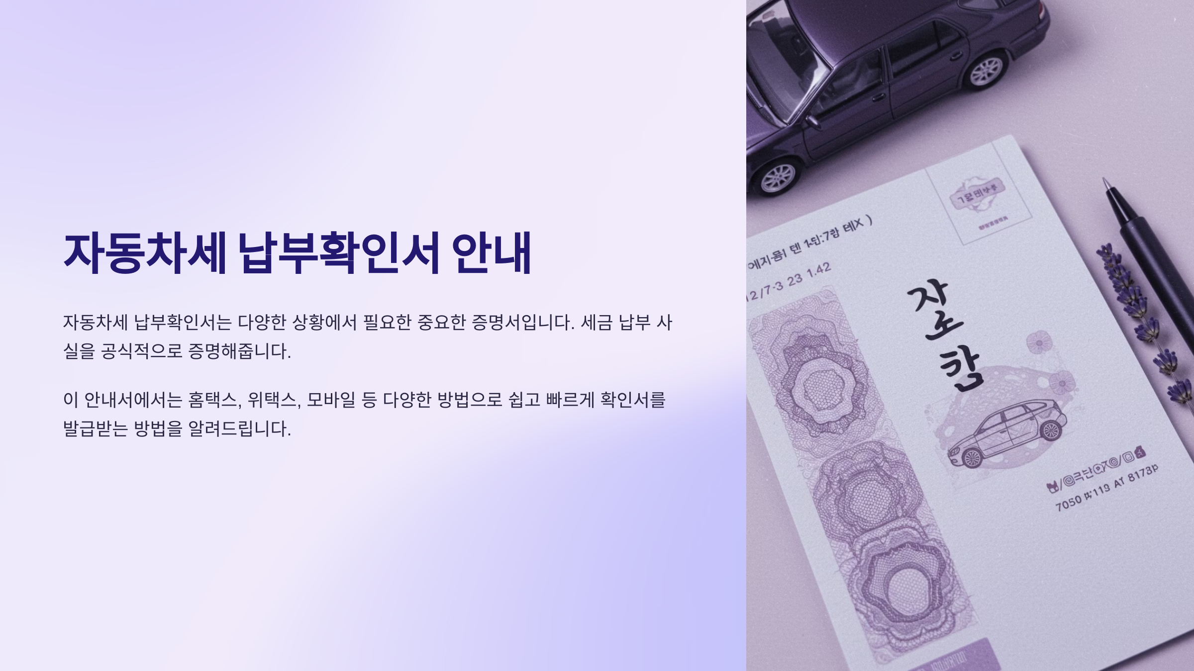 자동차세 납부확인서는 세금을 제대로 납부했는지 증빙할 수 있는 중요한 문서예요. 보험회사나 법원 제출용, 또는 자동차 매매 시 자주 사용되죠.