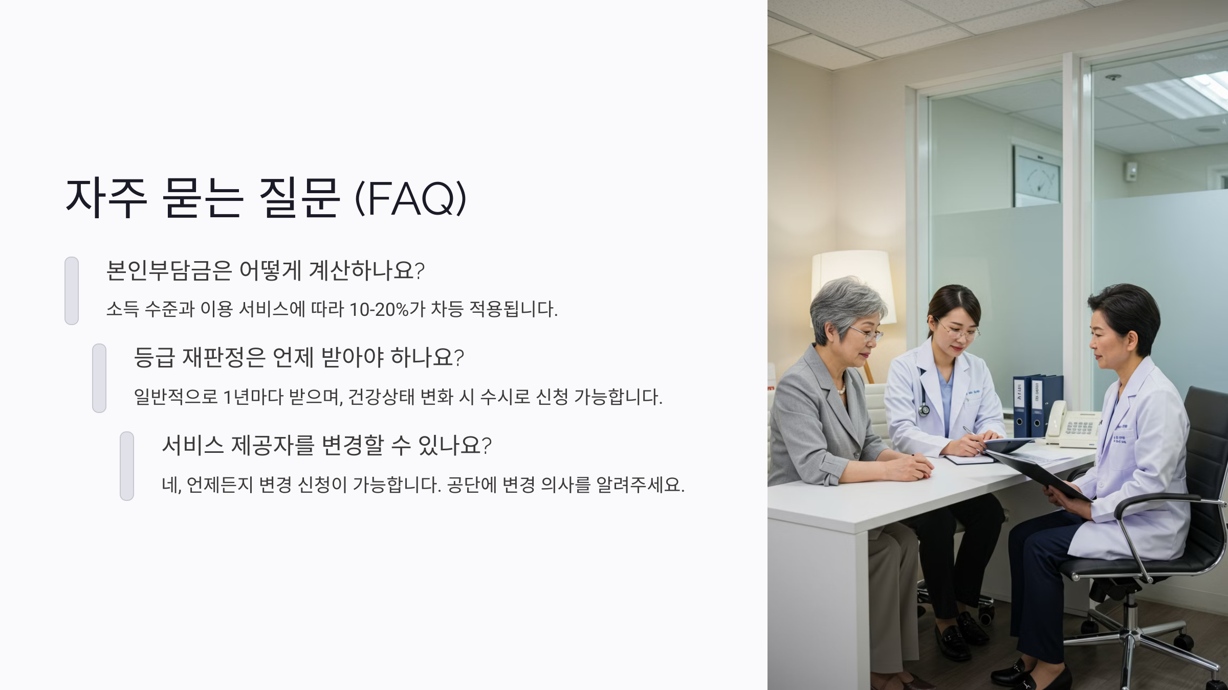 기초생활수급자는 이 본인부담금도 면제받는 경우가 많아 부담 없이 이용 가능해요.