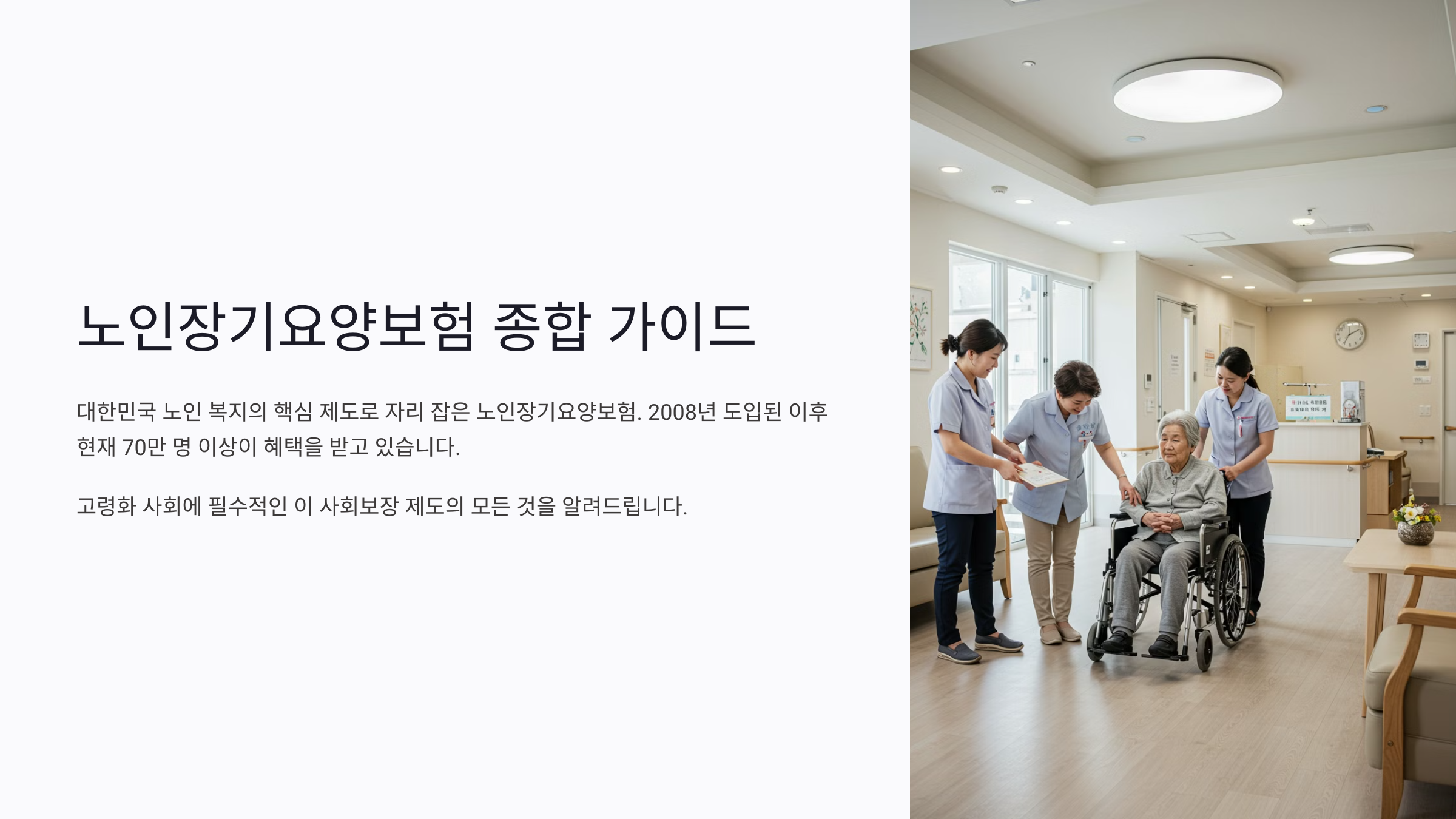 2008년에 시작된 이 제도는 빠르게 고령화되는 한국 사회에서 점점 중요성이 커지고 있어요.