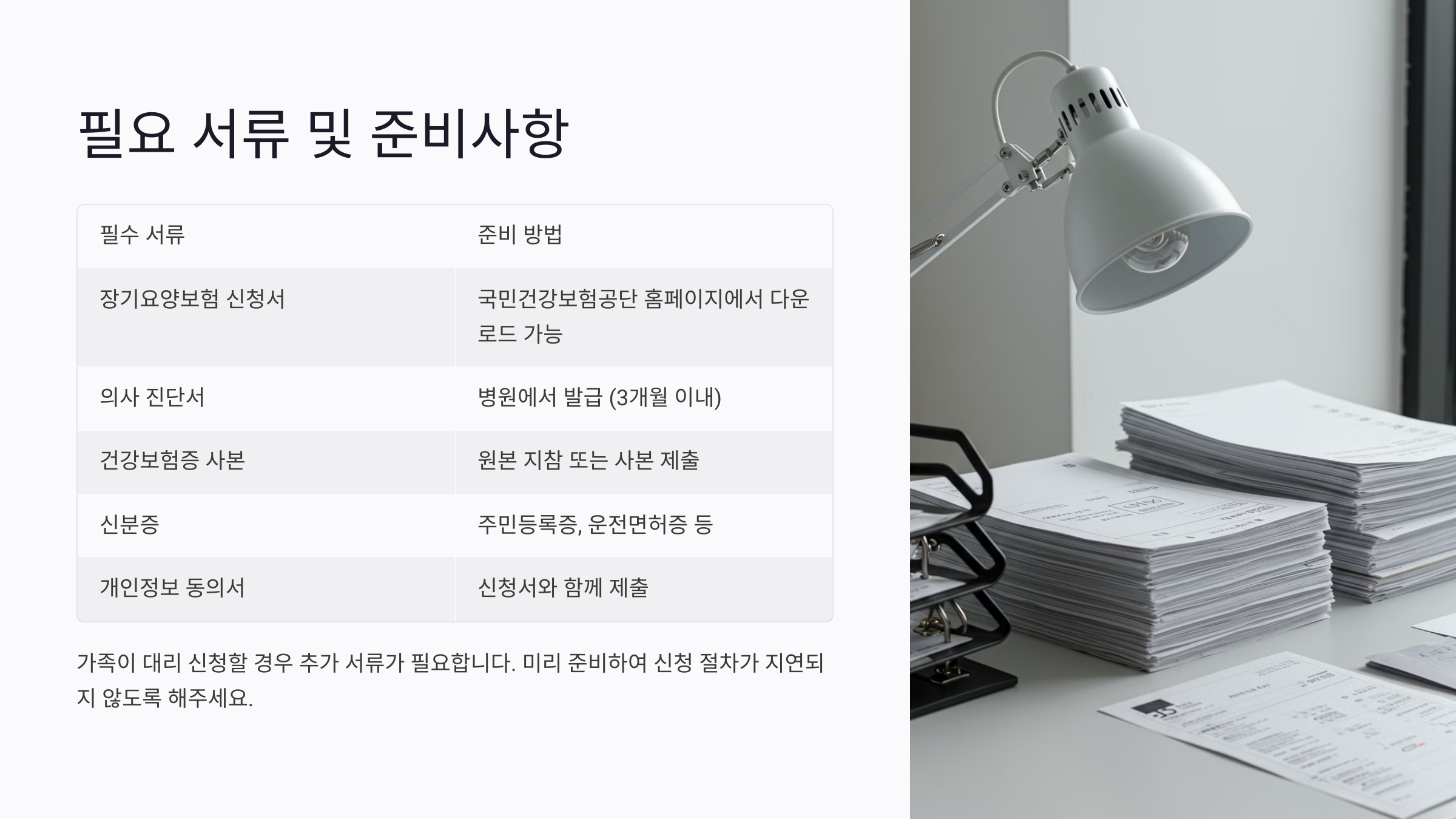 노인장기요양보험 신청을 준비할 때 가장 중요한 건 '서류'예요.