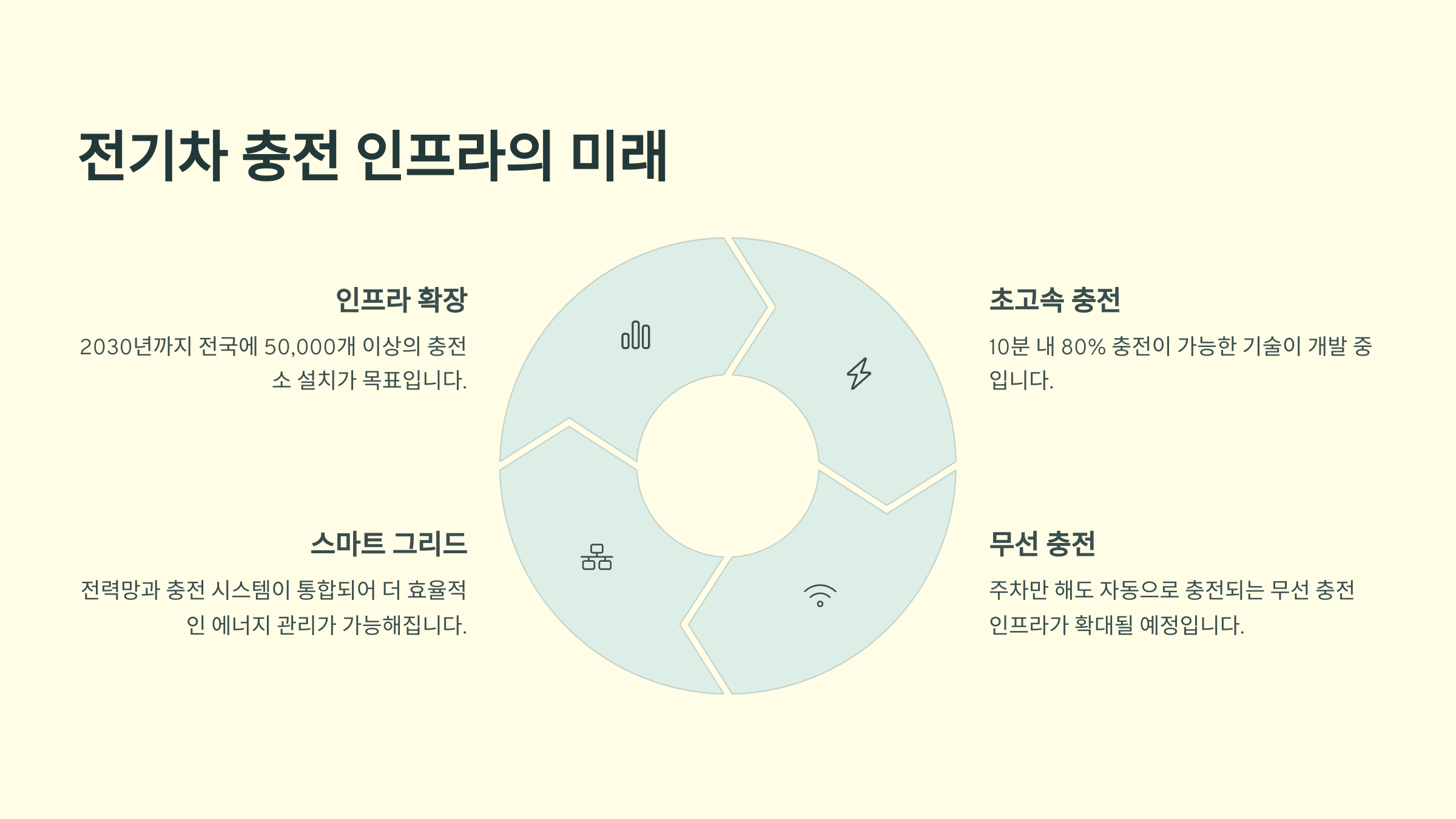 미래 전기차 인프라는 더 스마트하고, 더 빠르고, 더 편리해질 거예요. 🚘