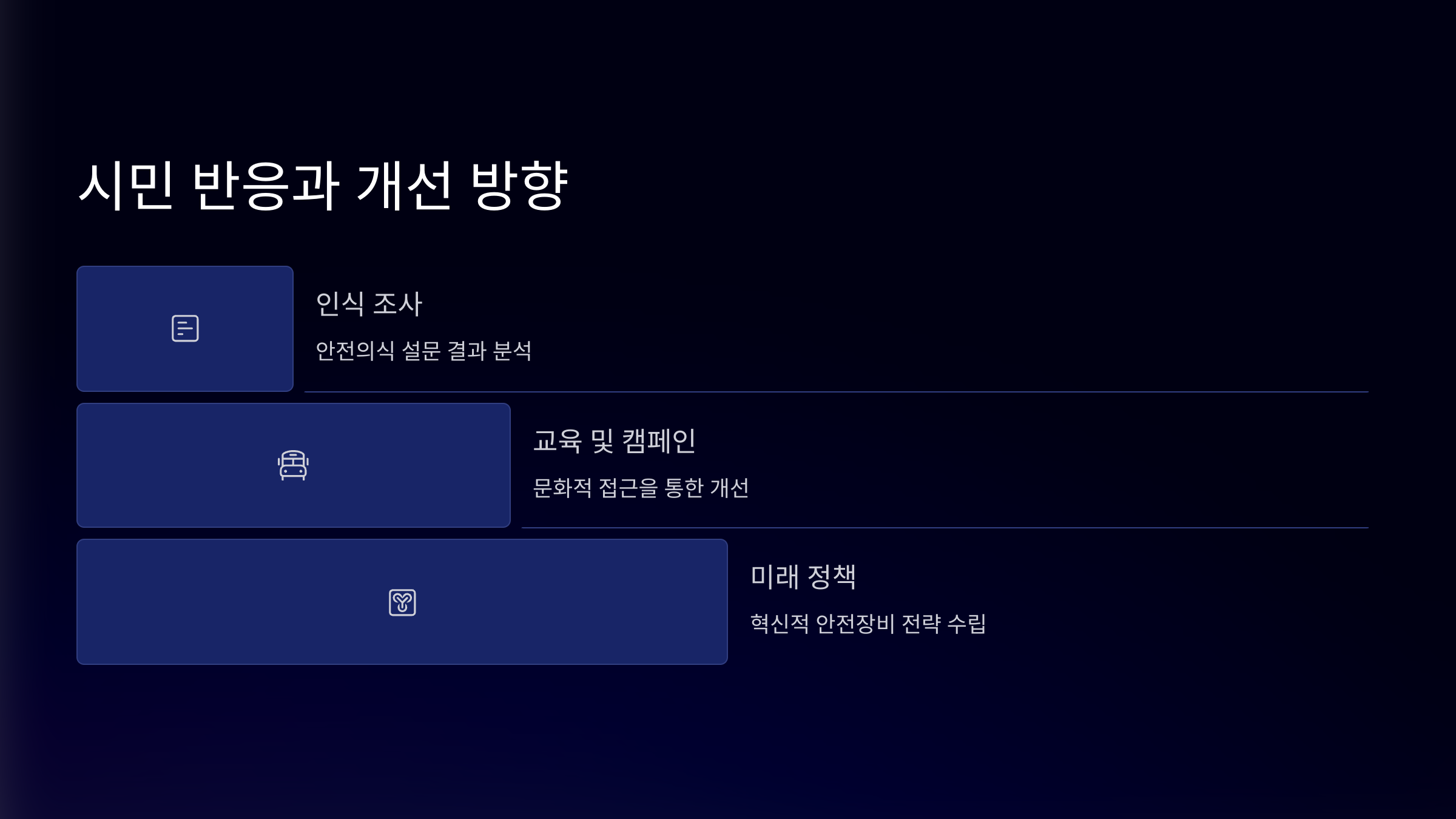 궁극적으로는 시민 스스로가 ‘안전은 나를 위한 선택’이라는 마음을 갖는 것이 변화의 핵심이에요.