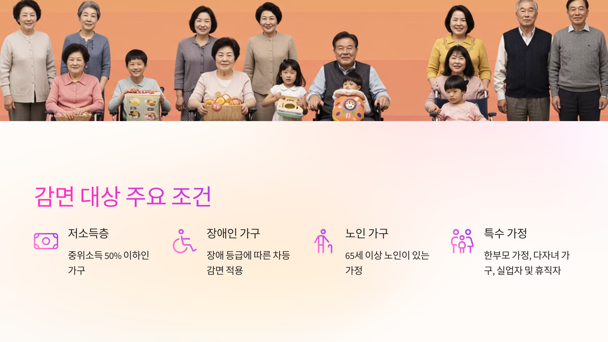 감면 대상은 사회적 약자, 경제적 위기자, 재난 피해자 등으로 정해져 있어요.