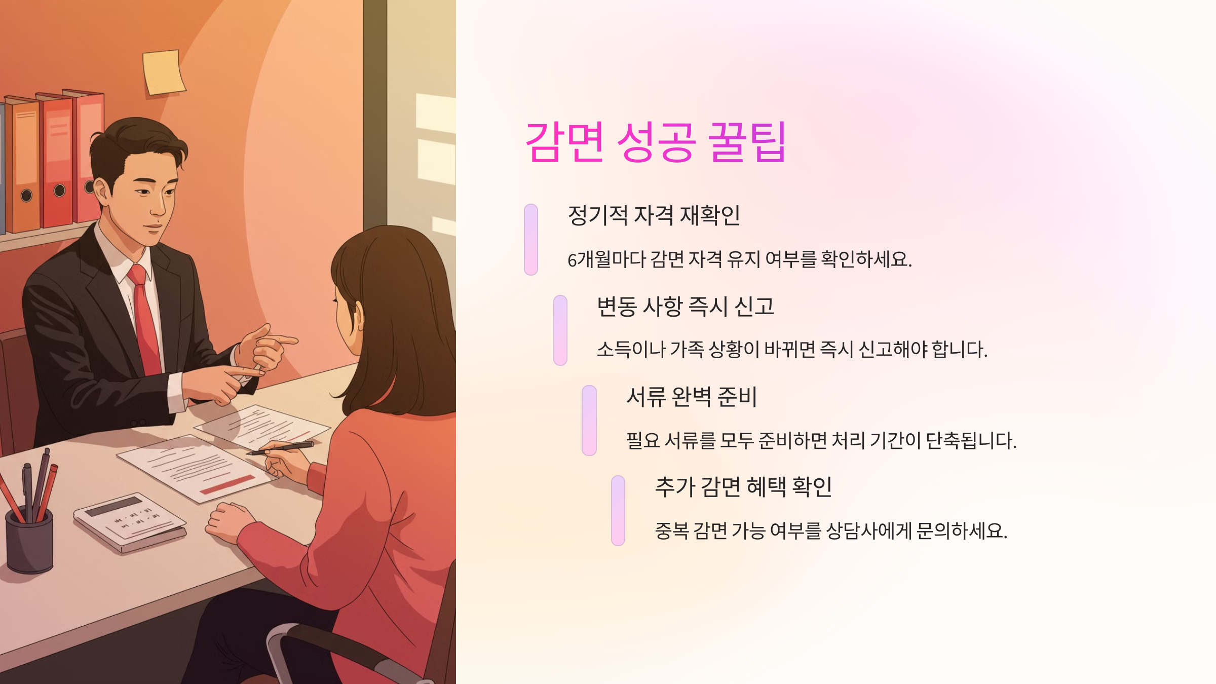 신청한다고 다 되는 건 아니에요! 감면 성공 확률을 높이려면 꿀팁이 필요해요. 🍯