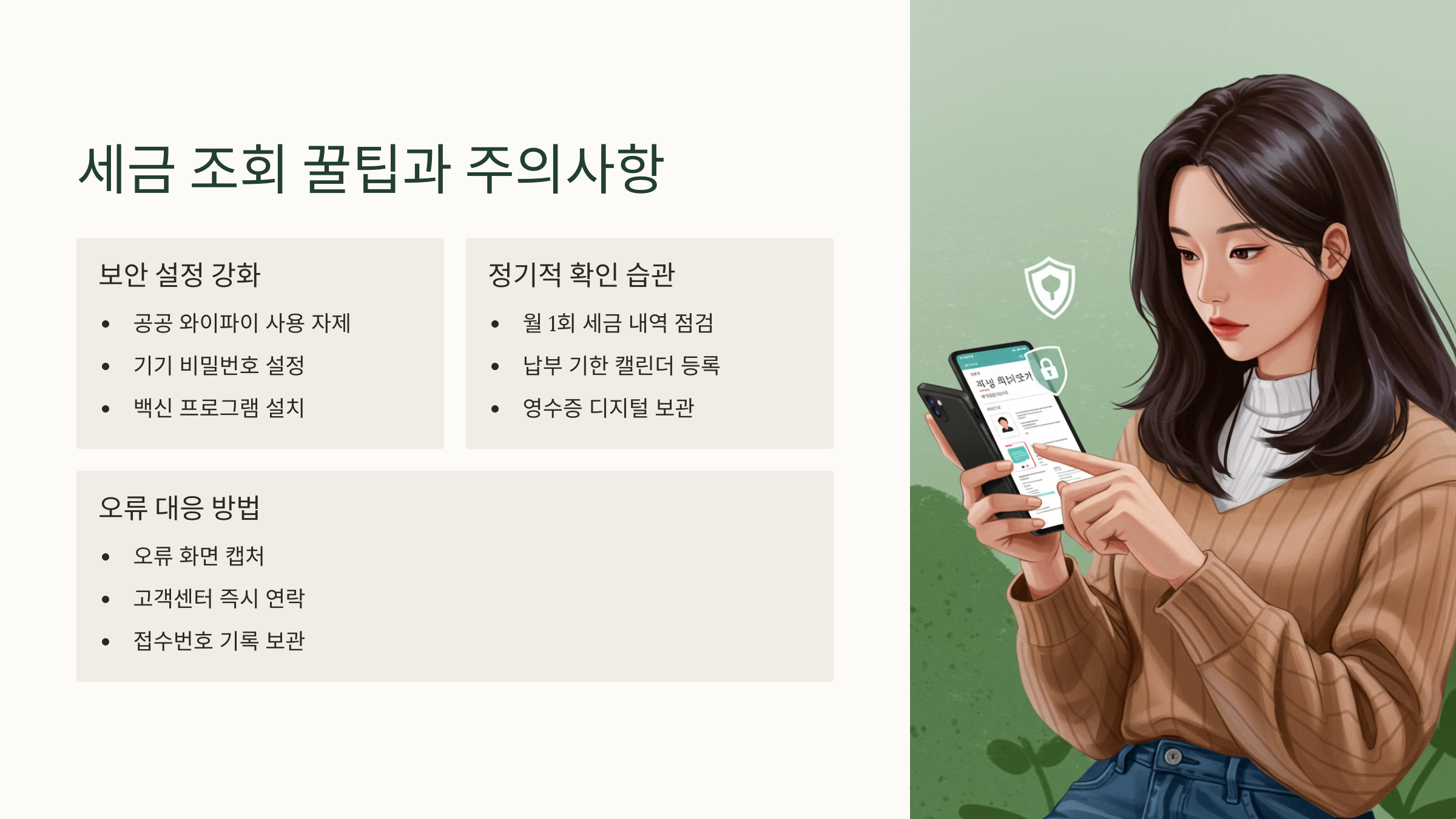 조회 전에 준비만 잘하면 5분 안에 모든 세금 상태를 확인할 수 있어요. 놓치지 마세요 🧾