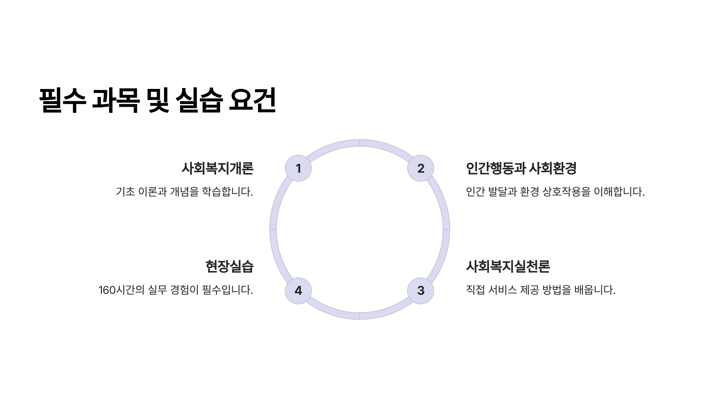 사회복지사 2급 자격증을 취득하기 위해서는 ‘정해진 과목’을 모두 이수하고 실습까지 완료해야 해요. 🎯