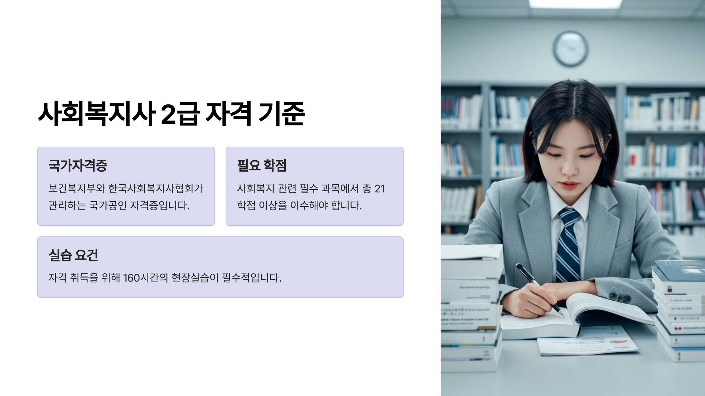 사회복지사 2급 자격은 국가자격증이며, 「사회복지사업법 시행규칙」에 의해 발급 조건이 정해져 있어요. 📋