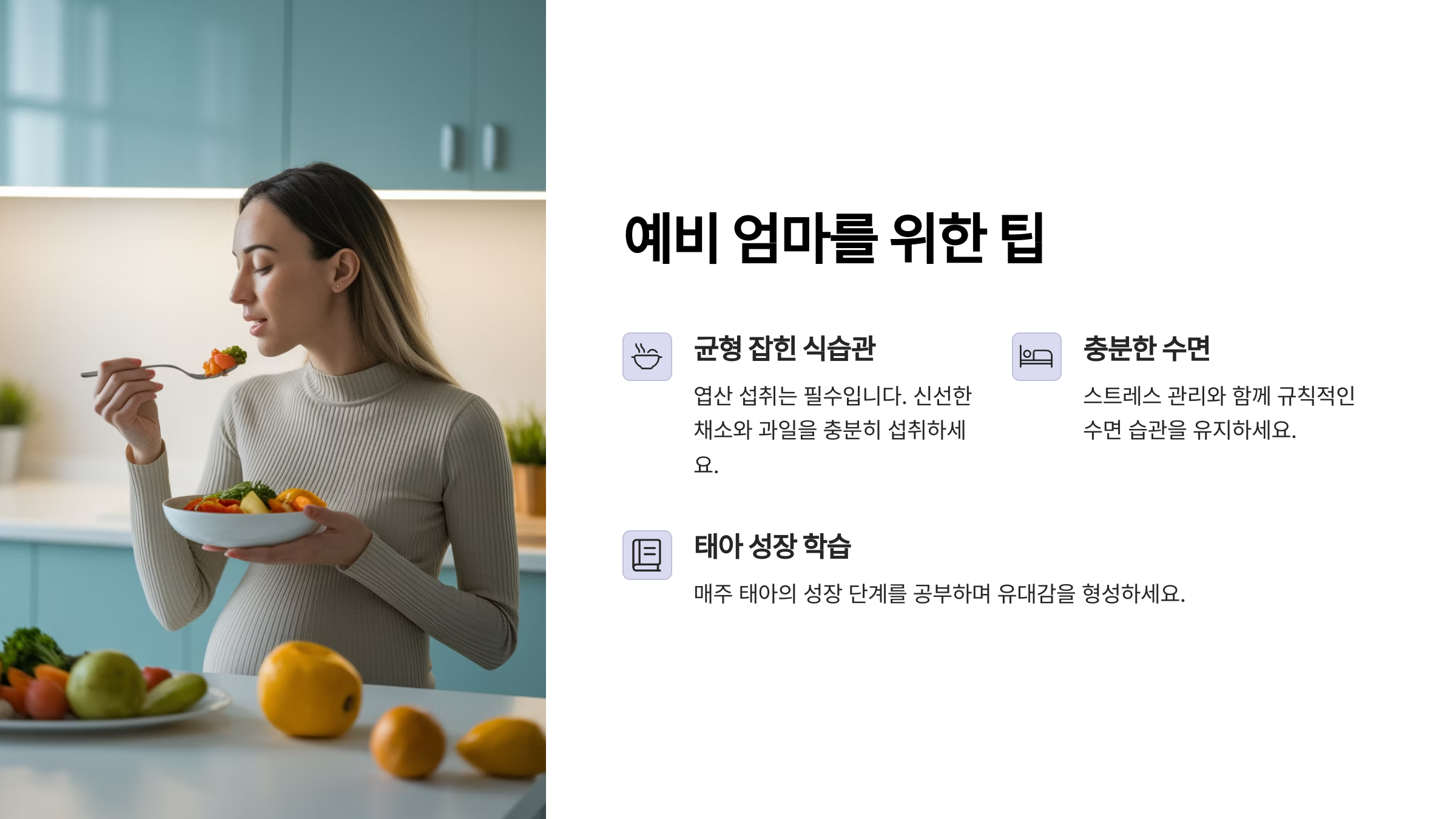 하지만 정확한 주차 파악만큼 중요한 건, 각 주차별 변화에 맞춰 몸과 마음을 잘 관리하는 거예요. 예비 엄마를 위한 팁을 주차별로 정리해볼게요!