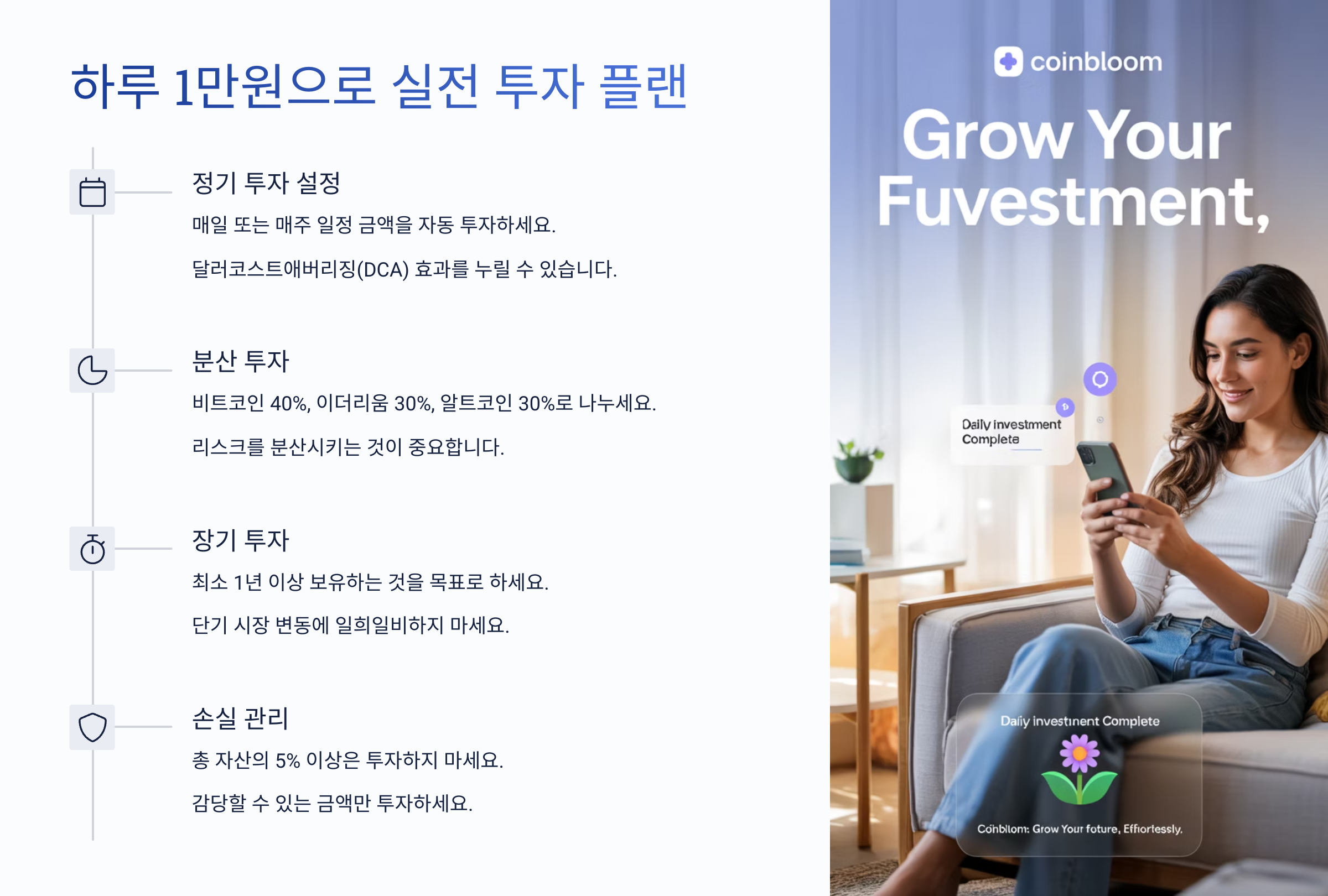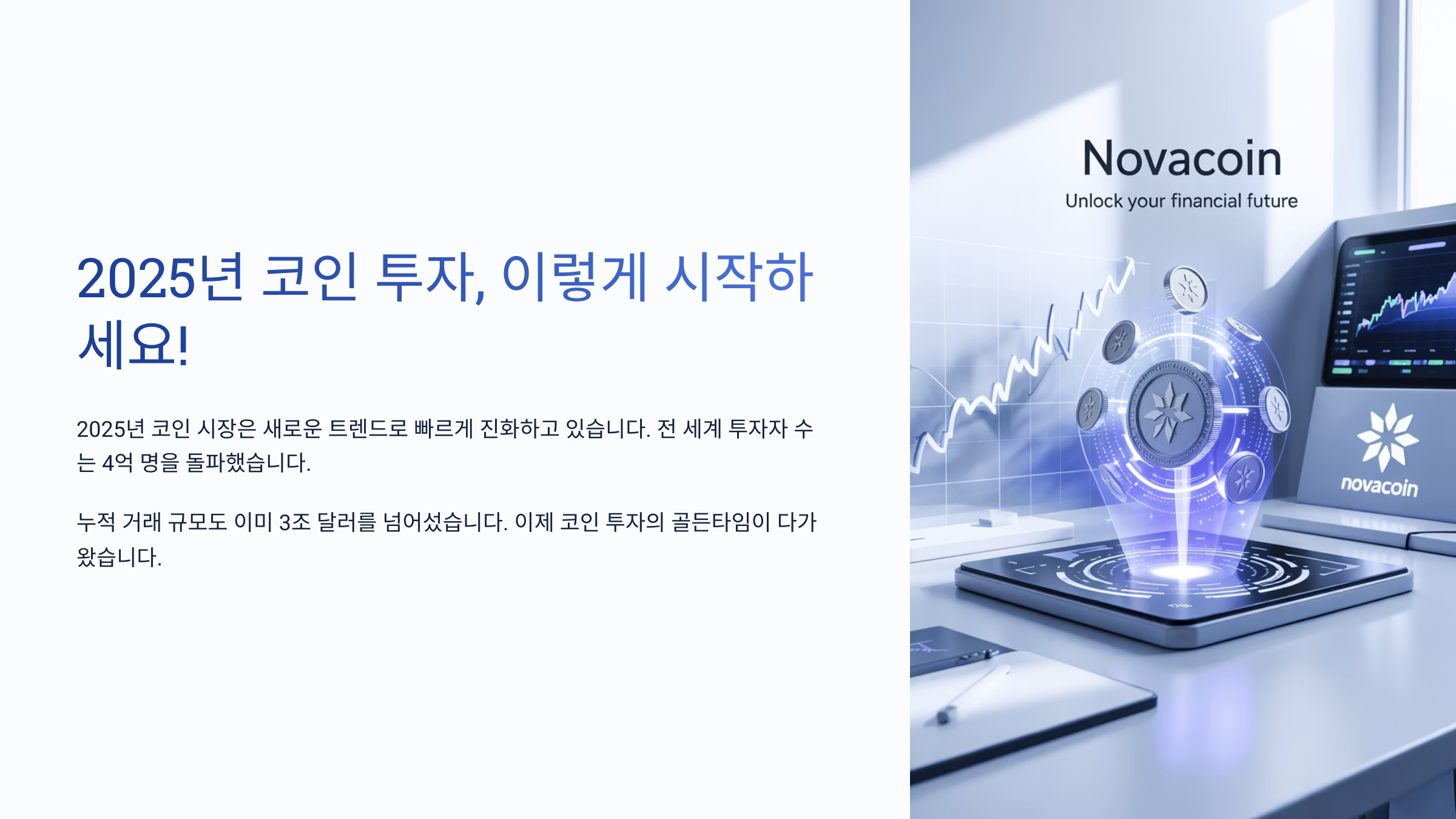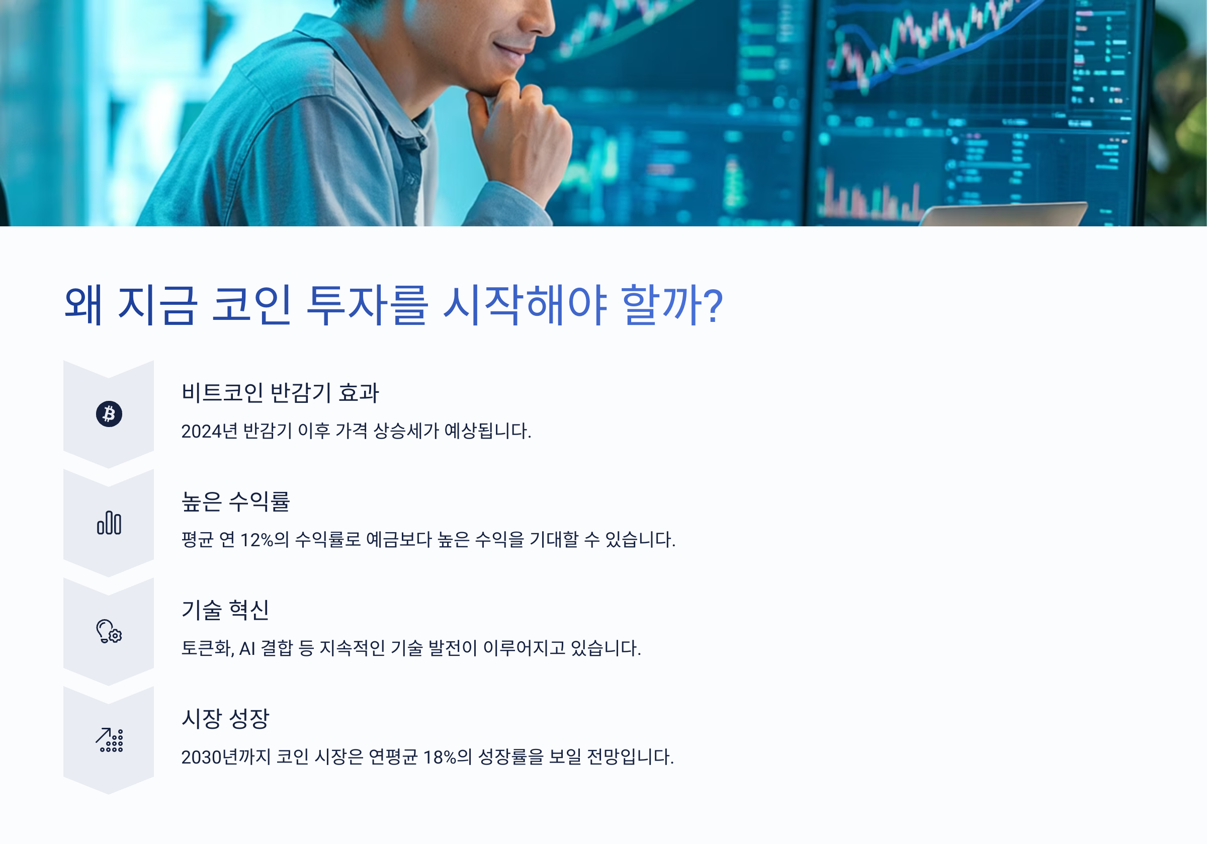 2025년, 코인 시장은 다시 한 번 주목받고 있어요. 비트코인, 이더리움은 물론이고 다양한 신생 코인들이 투자자들의 시선을 사로잡고 있죠. 하지만 많은 사람들이 '코인은 어렵고 위험하다'는 편견 때문에 시작을 망설이기도 해요. 그래서 오늘은 초보자도 부담 없이 시작할 수 있는, 가장 쉽고 안전한 코인 투자 방법을 안내하려고 해요. 복잡한 차트 분석 없이, 하루 1만원 투자부터 시작할 수 있는 방법! 지금 바로 함께 시작해볼까요?