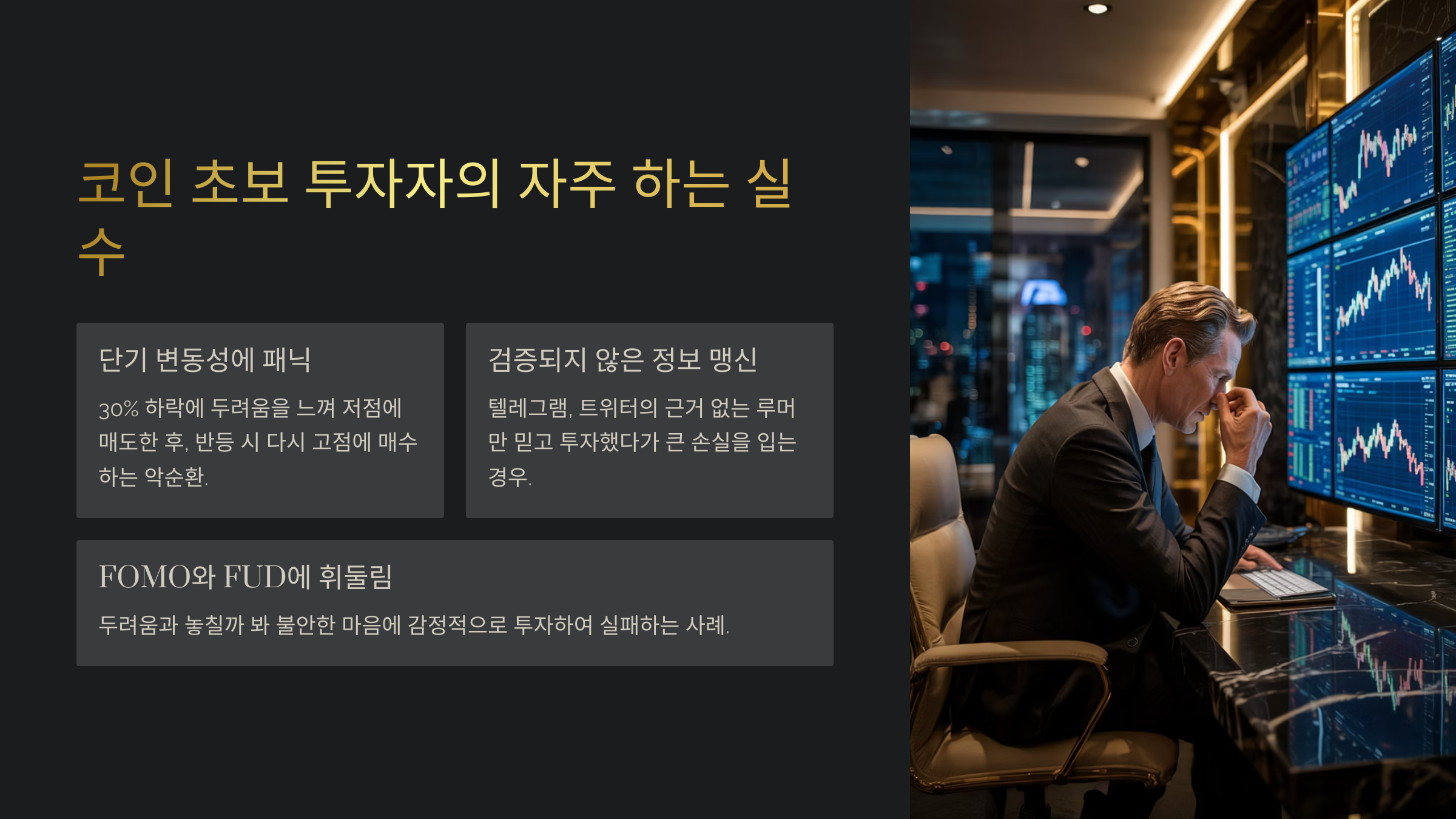 코인 투자에서 돈을 잃는 가장 큰 이유는 '시장의 변동성' 때문이 아니에요. 진짜 이유는 바로 '감정 조절 실패'예요. 🌀