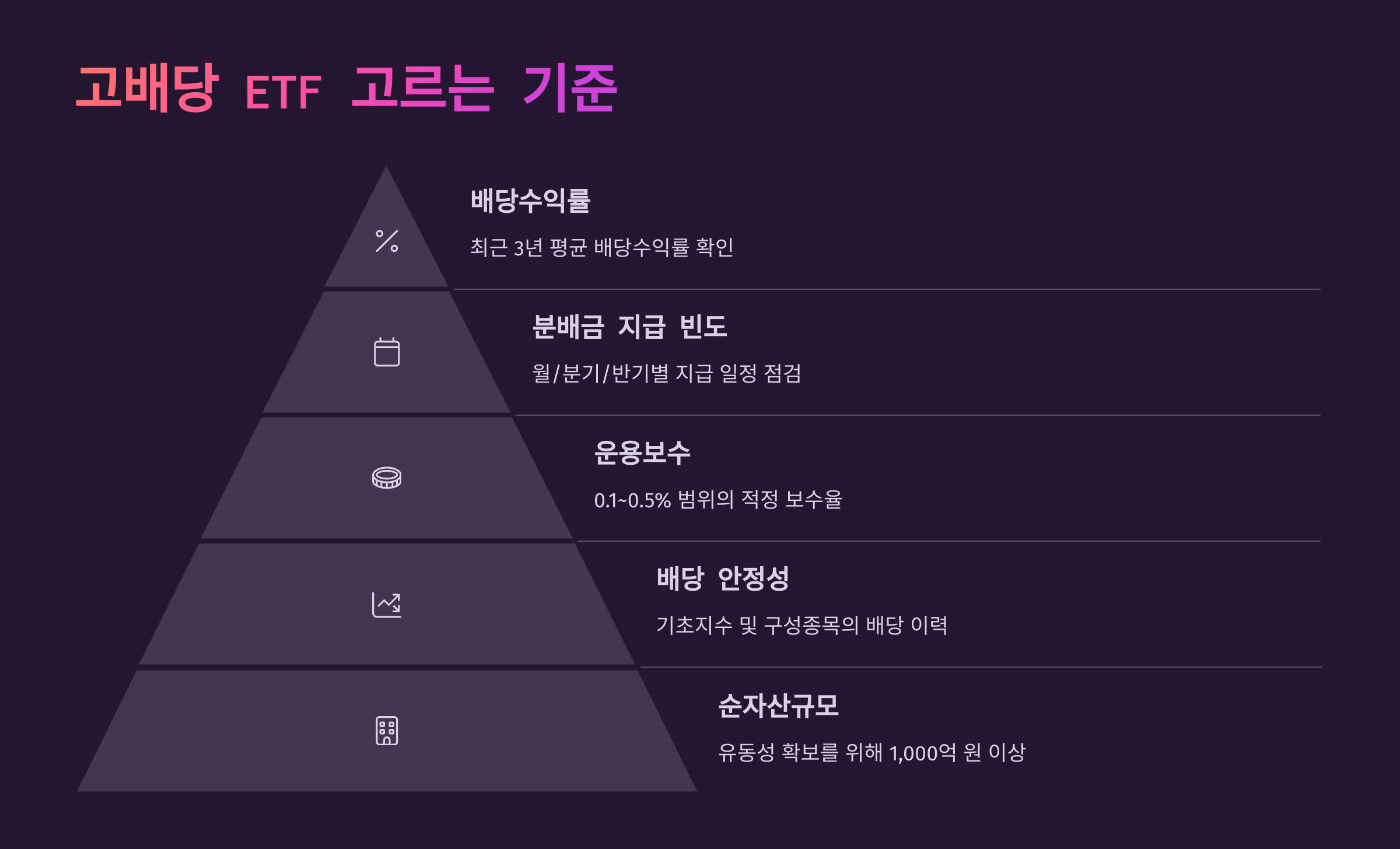 첫 번째 기준은 '배당 수익률'이에요. 단순히 수치만 보는 게 아니라, 그 배당이 얼마나 안정적인지를 따져야 해요. 1~2년 고배당이 아니라 5년 이상 안정적인 배당을 유지한 ETF가 좋답니다.