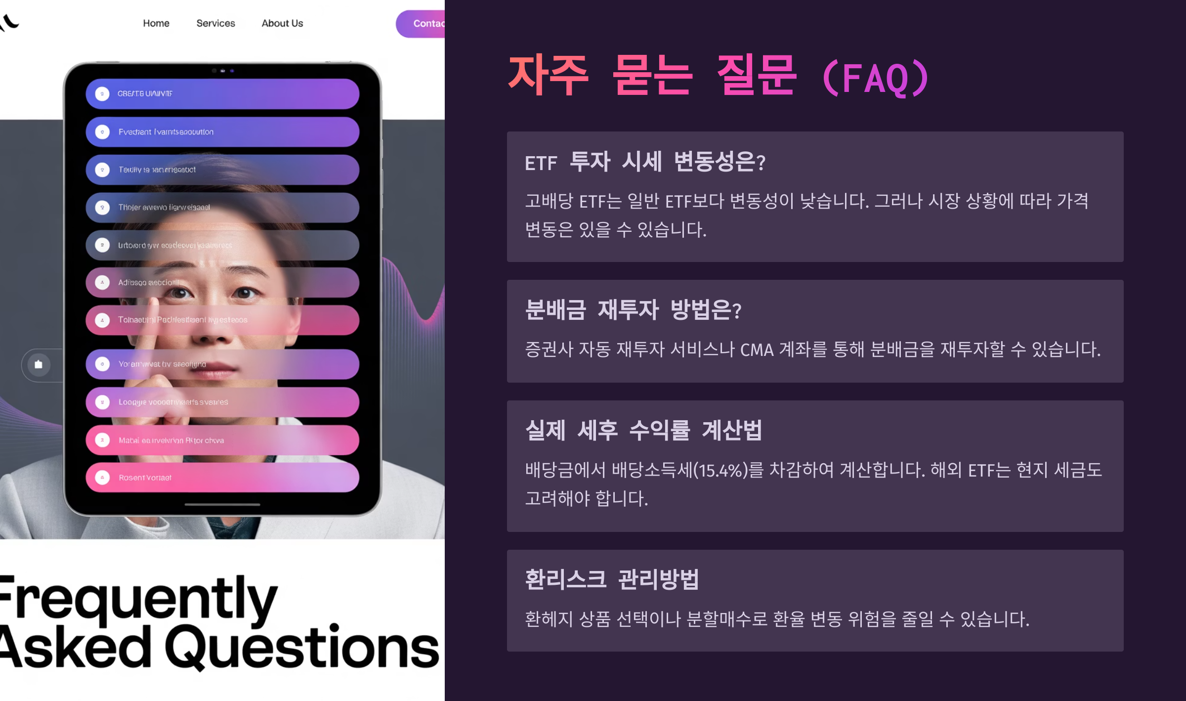 A8. 절대 늦지 않았어요. 배당 ETF는 장기 투자로 볼수록 가치가 커져요. 지금 시작해도 좋아요!