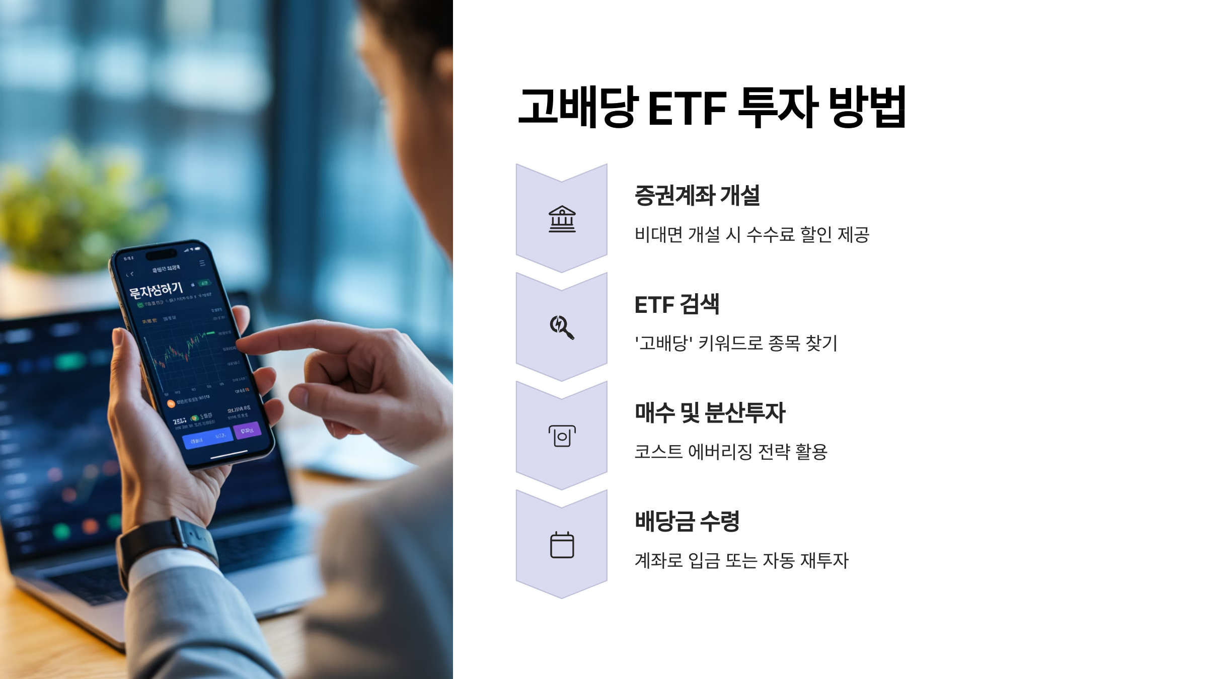 고배당 ETF 투자는 생각보다 간단해요. 일반 주식처럼 증권사 앱이나 홈페이지에서 검색하고 매수하면 끝이에요. 📱 하지만 '언제' '얼마나' '어떤 방식'으로 투자하느냐에 따라 수익률 차이가 크게 벌어져요.