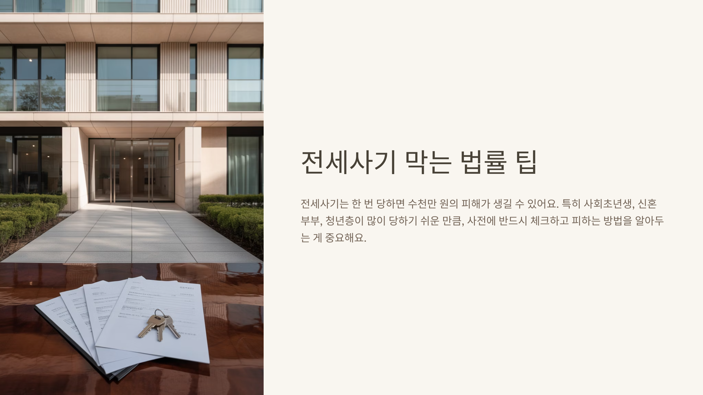 전세사기는 한 번 당하면 수천만 원의 피해가 생길 수 있어요. 특히 사회초년생, 신혼부부, 청년층이 많이 당하기 쉬운 만큼, 사전에 반드시 체크하고 피하는 방법을 알아두는 게 중요해요.