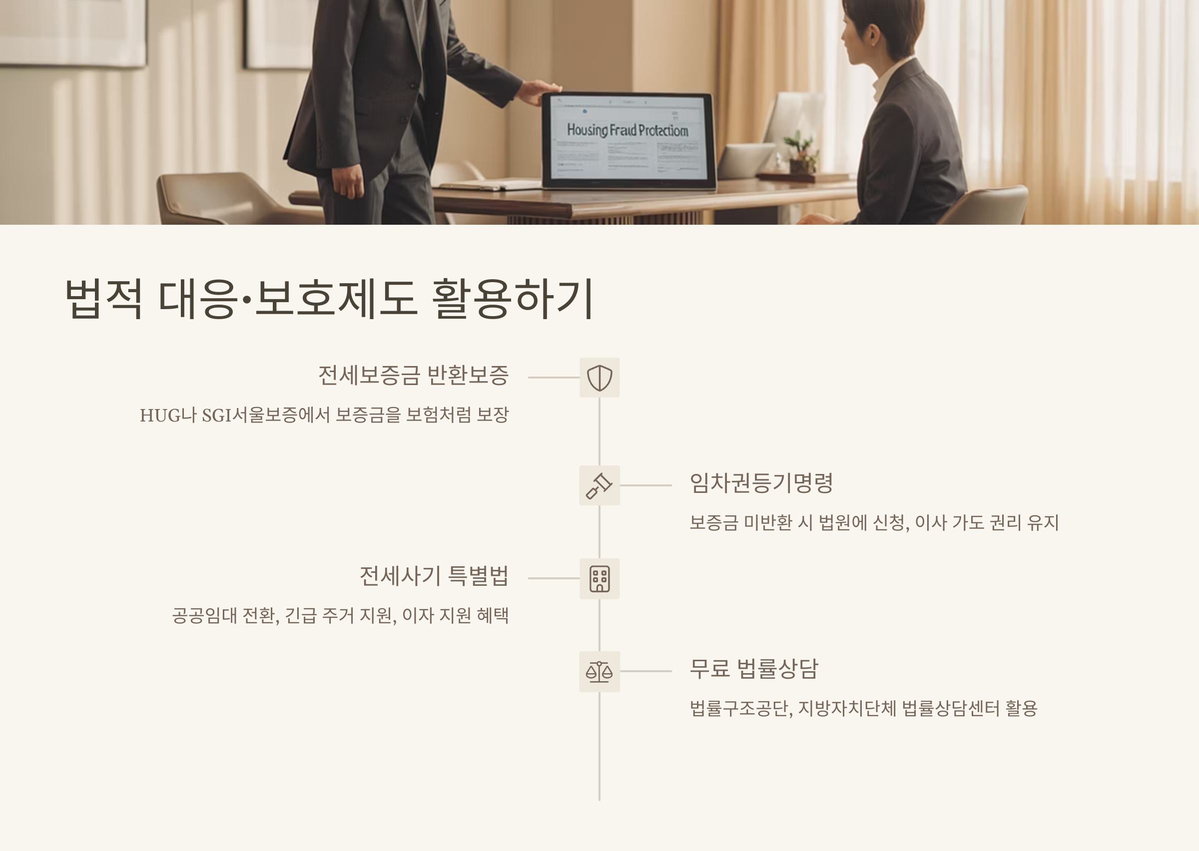 만약 전세사기 피해가 발생했거나, 그럴 가능성이 있다고 느껴진다면 곧바로 사용할 수 있는 법적 보호 장치들이 있어요. 이 제도들을 미리 알고만 있어도 위기 상황에서 빠르게 대응할 수 있어요.