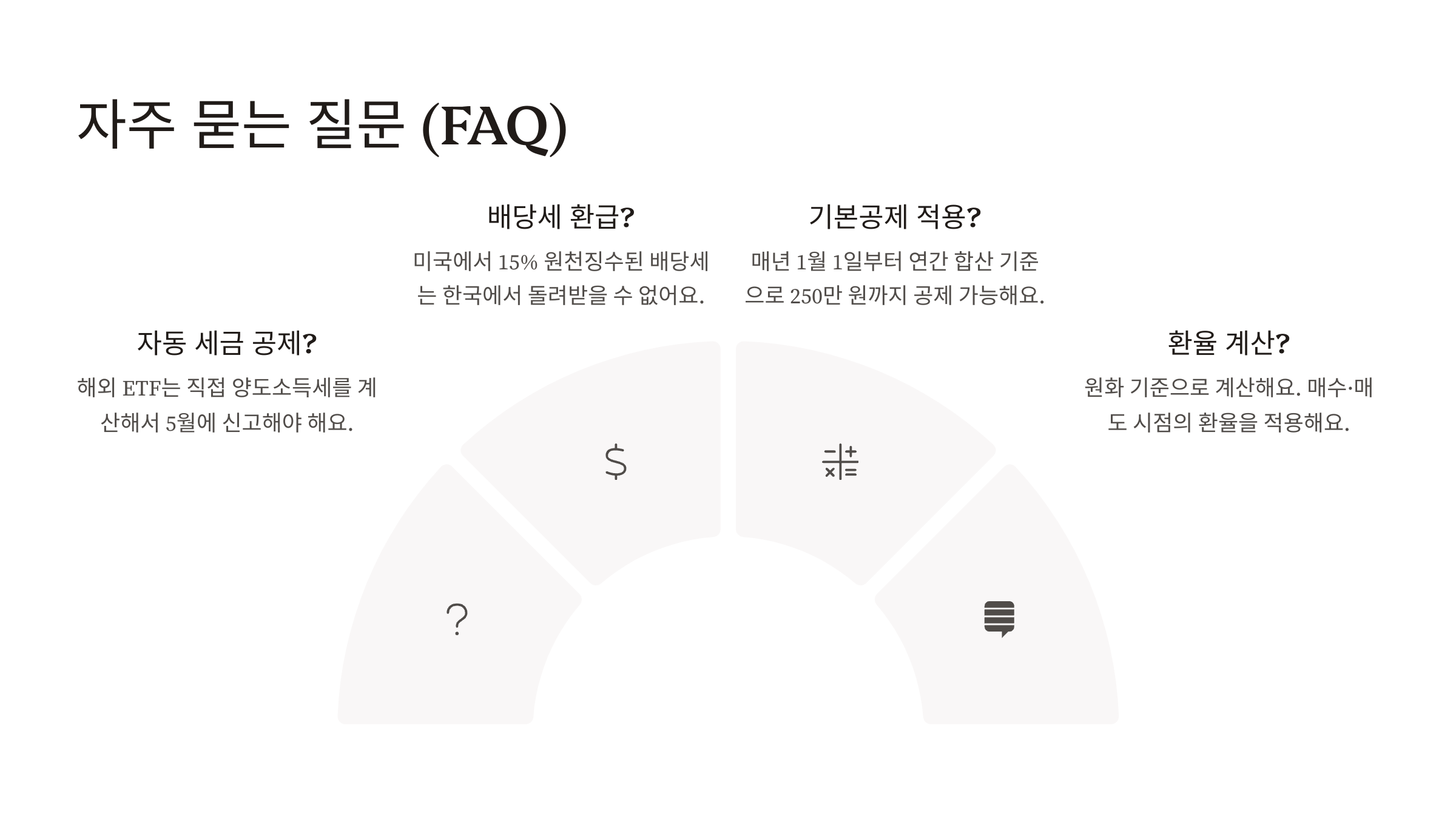 A1. 아니에요. 해외 ETF는 직접 양도소득세를 계산해서 5월에 신고해야 해요. 자동으로 빠지지 않아요.