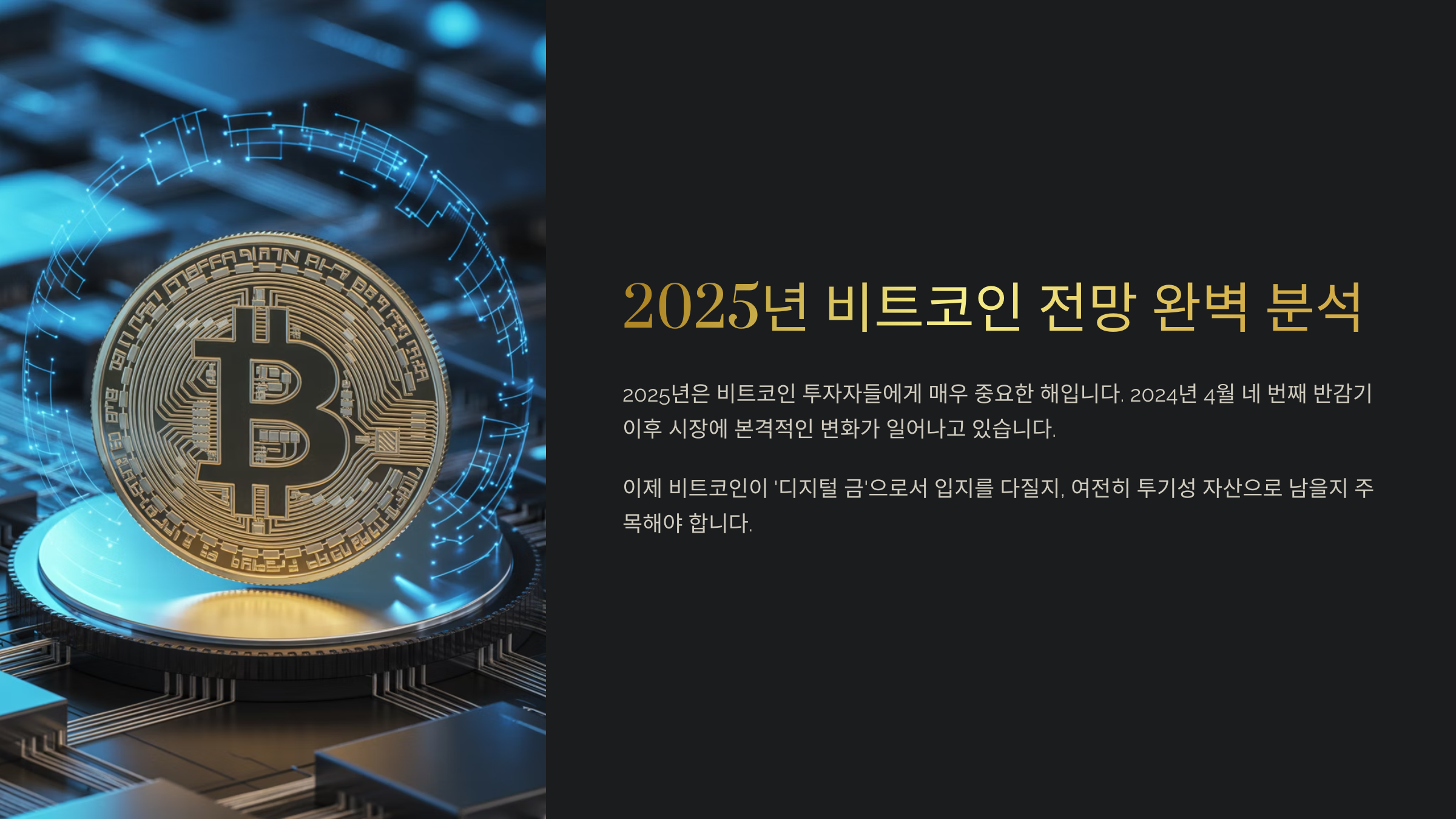 2025년은 비트코인 투자자들에게 매우 중요한 해예요. 이미 2024년 4월에 네 번째 반감기가 진행되었고, 그 여파가 본격적으로 시장에 반영되고 있는 시기이기 때문이죠. 이 시점에서 비트코인이 과연 ‘디지털 금’으로서의 입지를 확고히 다질 수 있을지, 혹은 여전히 투기성 자산으로 평가받을지 관심이 집중되고 있어요.